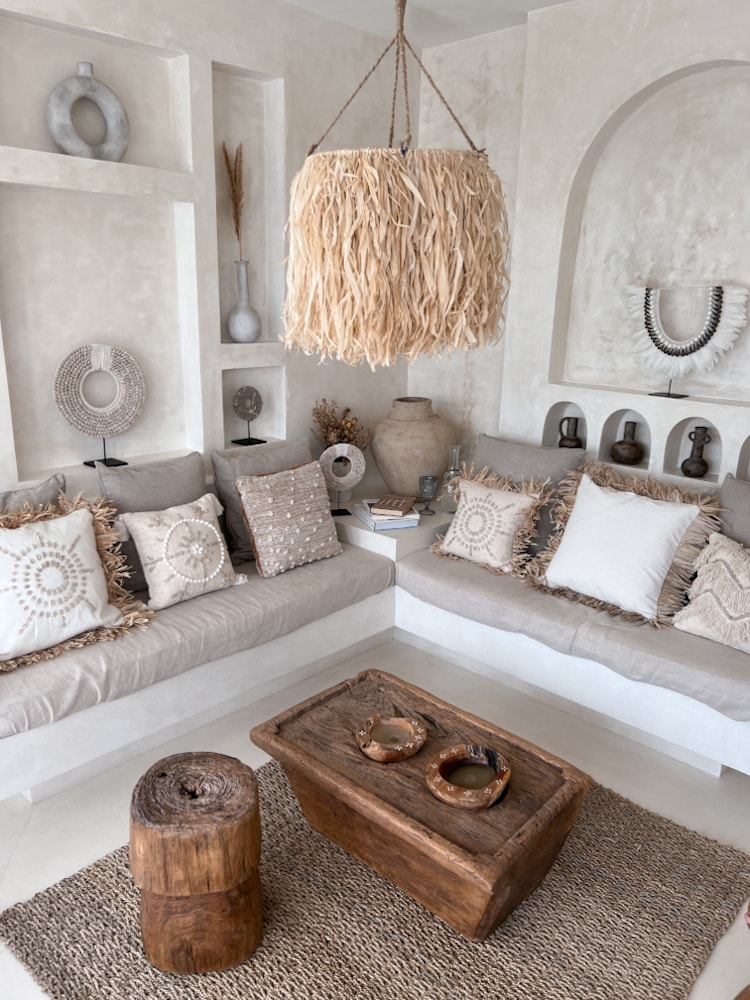 Erleben Sie die Wärme des Sonnenlichts mit der Boho-Lampe SURYA. Inspiriert von der Sonne, bringt diese Lampe mit ihrem sanften, durch das Rattan gefilterten Licht, Wärme in Ihr Heim. Ideal für Räume, die nach einer natürlichen und beruhigenden Lichtquelle suchen.