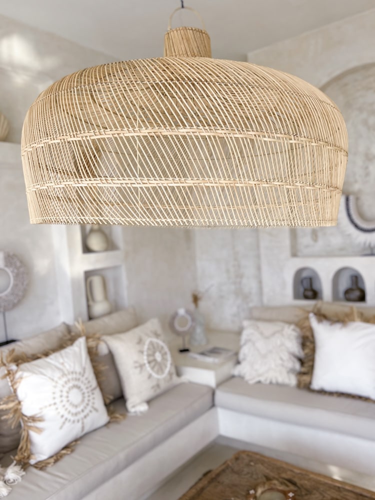 Die Boho Rattan Lampe CINTA XL ist ein echter Blickfang in jedem Raum. Mit ihrem eleganten Design und der beeindruckenden Größe fügt sie sich nahtlos in jedes Wohnambiente ein und setzt gleichzeitig ein Statement für balinesisches Handwerk und Stil.