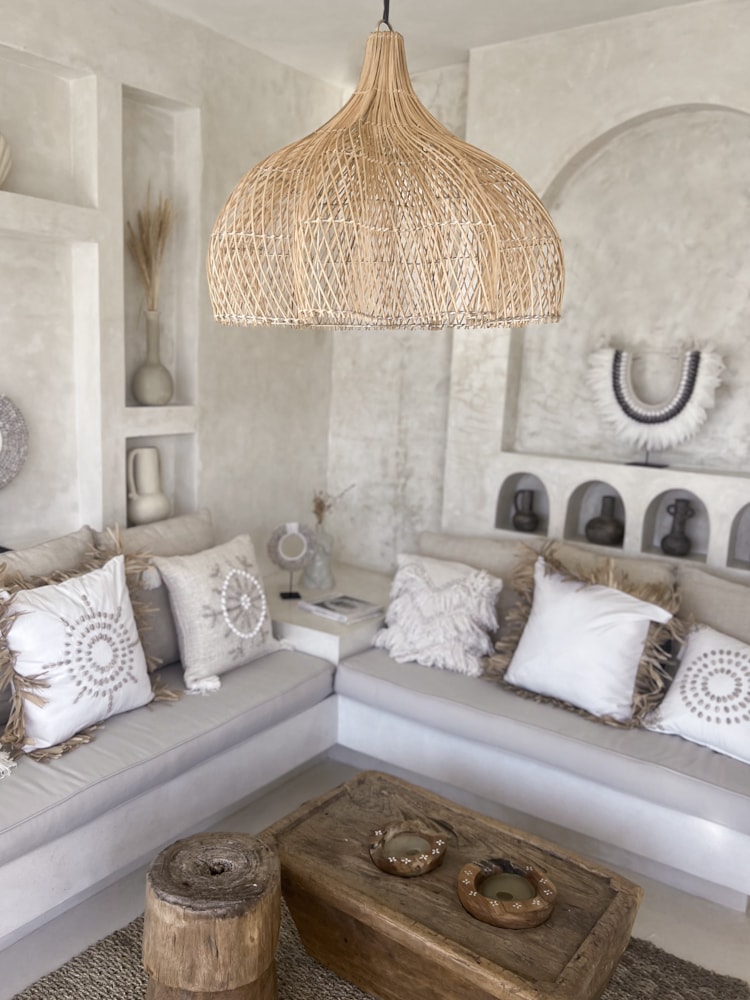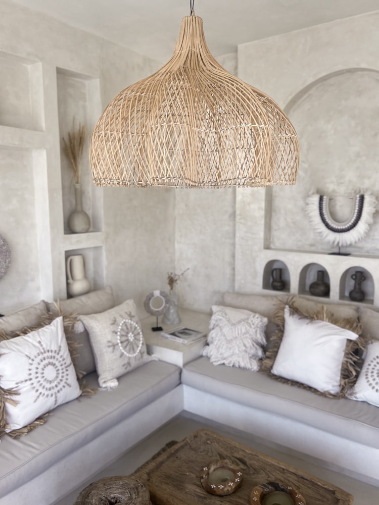 Die Boho Rattan Lampe FLOWER L beeindruckt mit ihrem großzügigen Blumenmuster und ihrer imposanten Größe. Sie ist das perfekte Statement-Piece für alle, die einen Hauch von Natur in ihre Wohnräume bringen möchten.