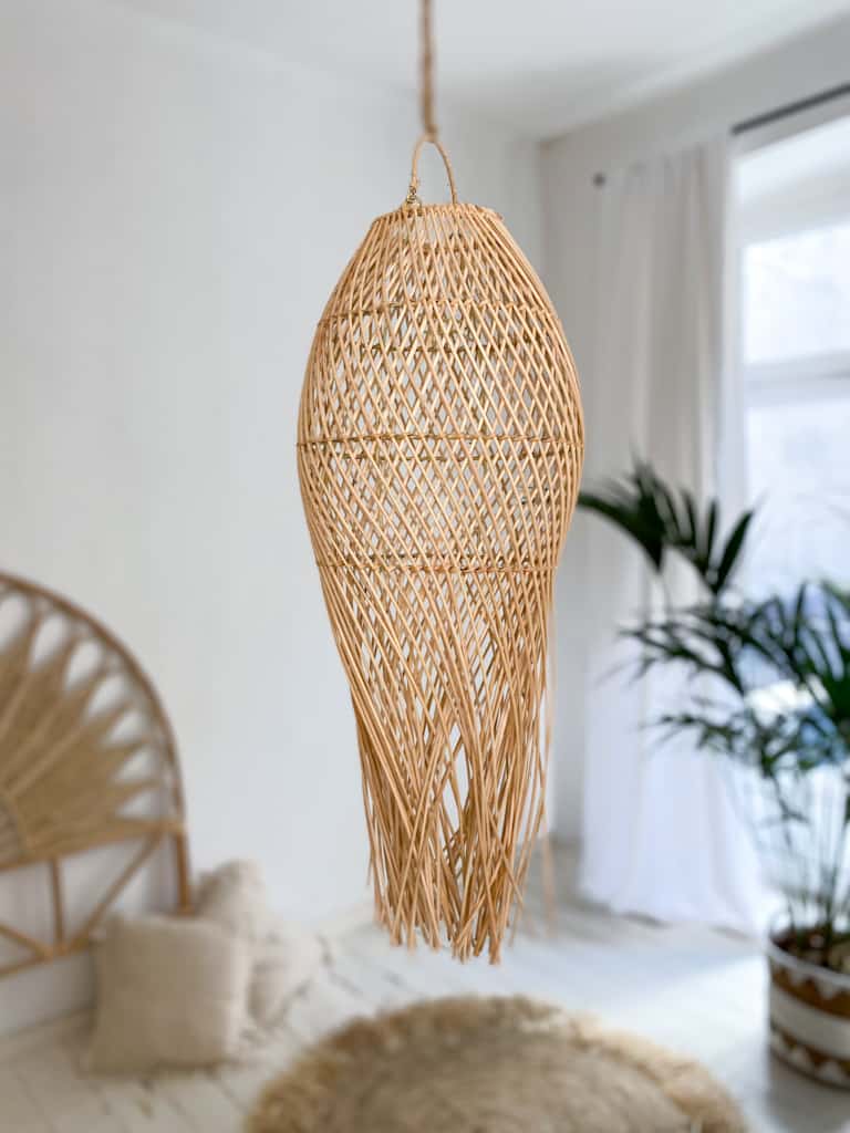 Beschreibung: Exquisite Rattanlampe im Boho-Stil
