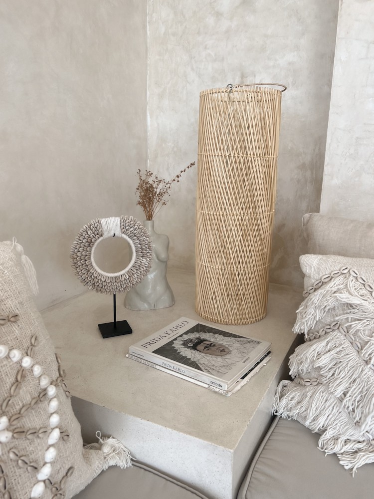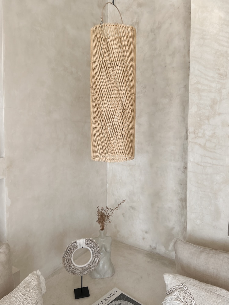 Die Boho Rattan Lampe TERANG besticht durch ihre schlichte Eleganz und ihr warmes Licht. Mit einer Höhe von 60cm und einem Durchmesser von 20cm ist sie ideal für kleine bis mittelgroße Räume. Handgefertigt auf Bali, strahlt sie natürliche Schönheit und Handwerkskunst aus und verleiht Ihrem Zuhause eine gemütliche Atmosphäre.