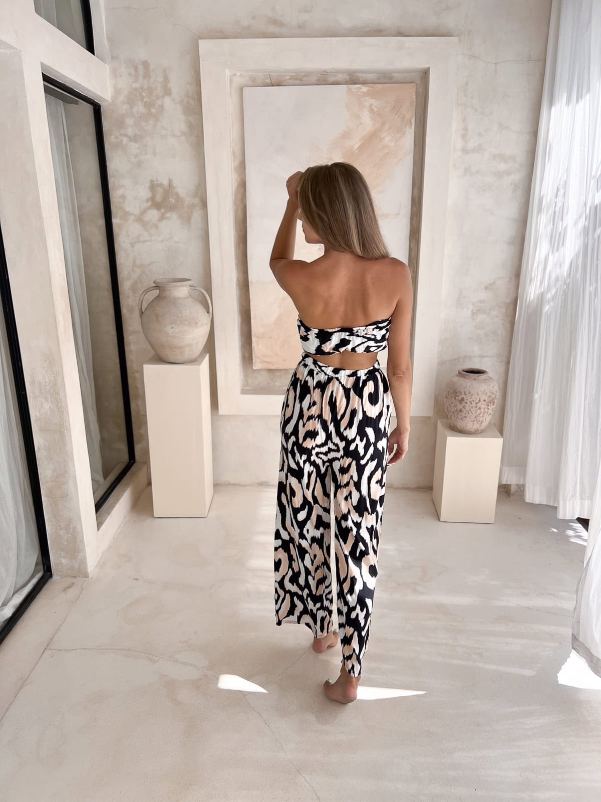 Unsere Damen Zweiteiler werden auf Bali in kleinen lokalen Werkstätten von Hand genäht – jedes Stück ist ein Unikat und steht für stilvolle, ethisch gefertigte Mode. Eine Kombination aus Komfort, Qualität und zeitlosem Design.