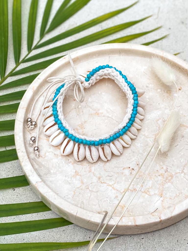 Fußkettchen MANIS – Dieses stilvolle Fußarmband, handgefertigt auf Bali, zeichnet sich durch seinen trendigen und schicken Boho-Stil aus. Es ist attraktiv und modisch, ideal für modebewusste Trägerinnen und Träger. Das leichte Design sorgt für Komfort und eine universelle Passform, die sich jedem Look anpasst.
