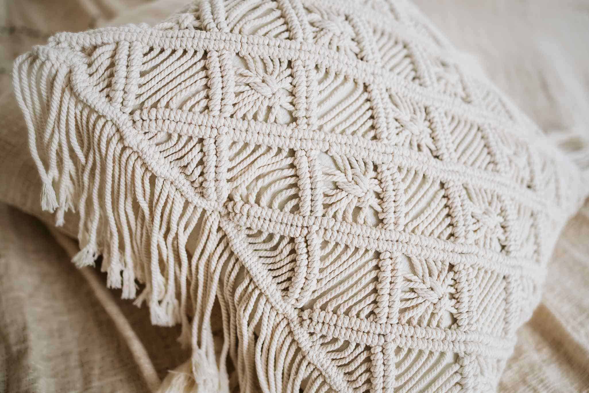 Beschreibung: Geflochtene Makramee-Boho-Kissenbezug DUA L