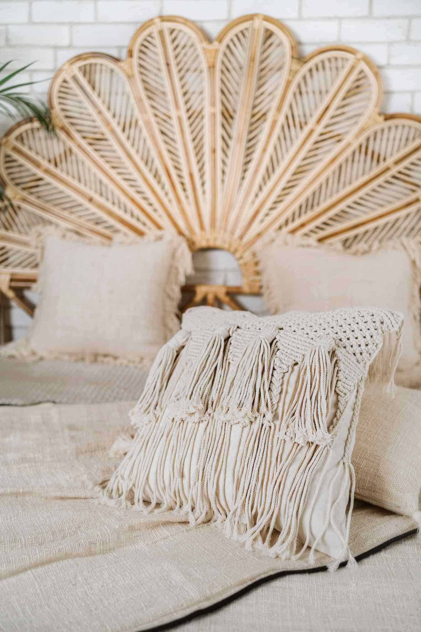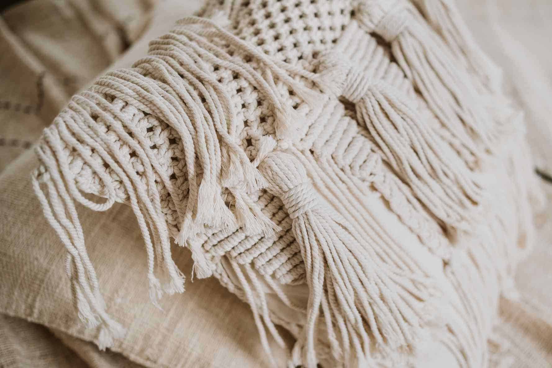 Beschreibung: Geflochtene Makramee-Boho-Kissenbezug SATU L