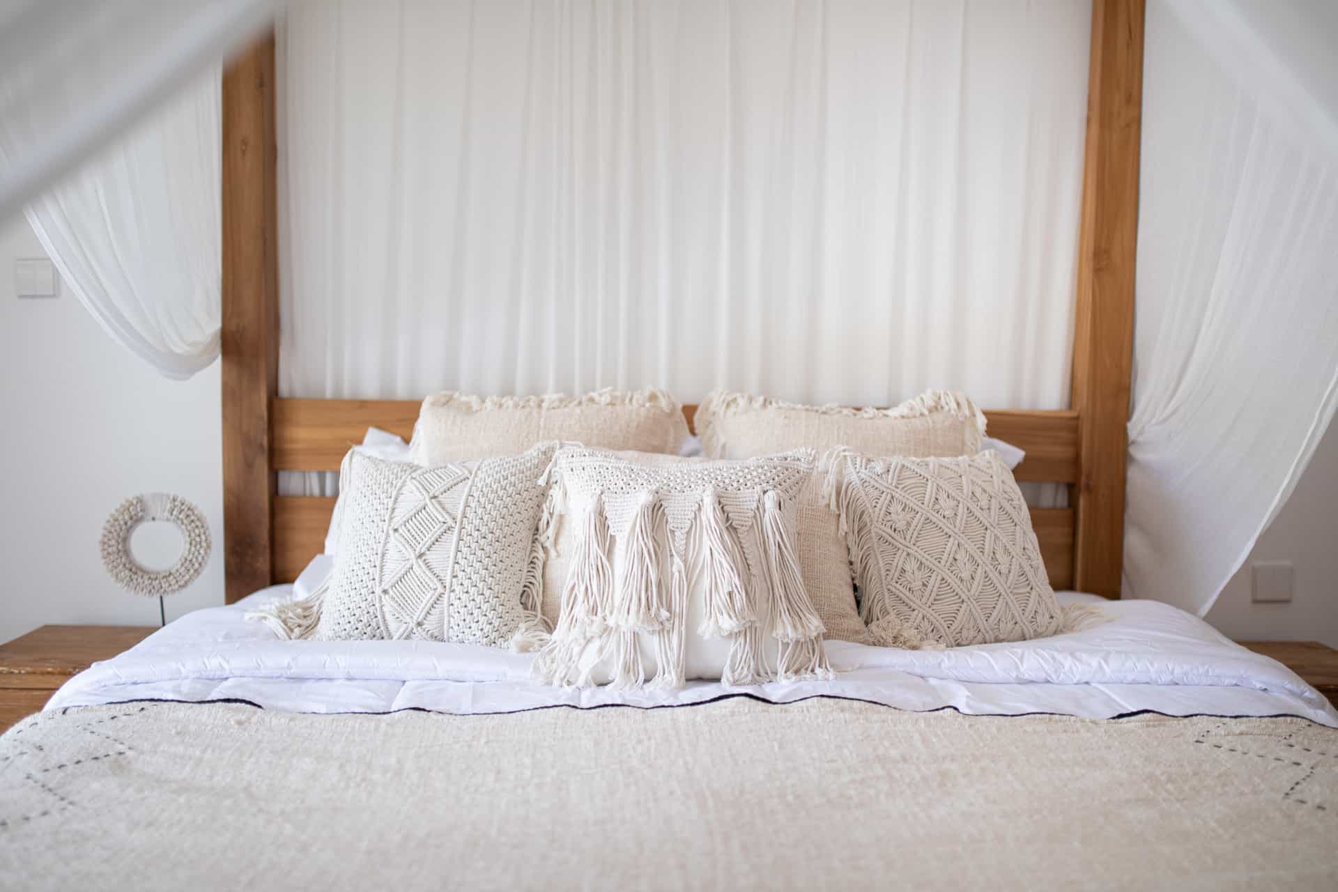 Geflochtene Makramee-Boho-Kissenbezug SATU – Verleihe deinem Zuhause einen Hauch von balinesischem Charme mit unserem handgefertigten Makramee-Kissenbezug SATU. Dieser einzigartige Kissenbezug, inspiriert von der traditionellen Kunsthandwerkstechnik aus Bali, verbindet Boho-Makramee-Design mit ethno Wohnaccessoires zu einer nachhaltigen Dekoration für dein Zuhause. Jeder Bezug ist ein Stück authentisches Bali Kunsthandwerk, das deinen Wohnraum mit seinem einzigartigen, geflochtenen Design und natürlichen Materialien bereichert.