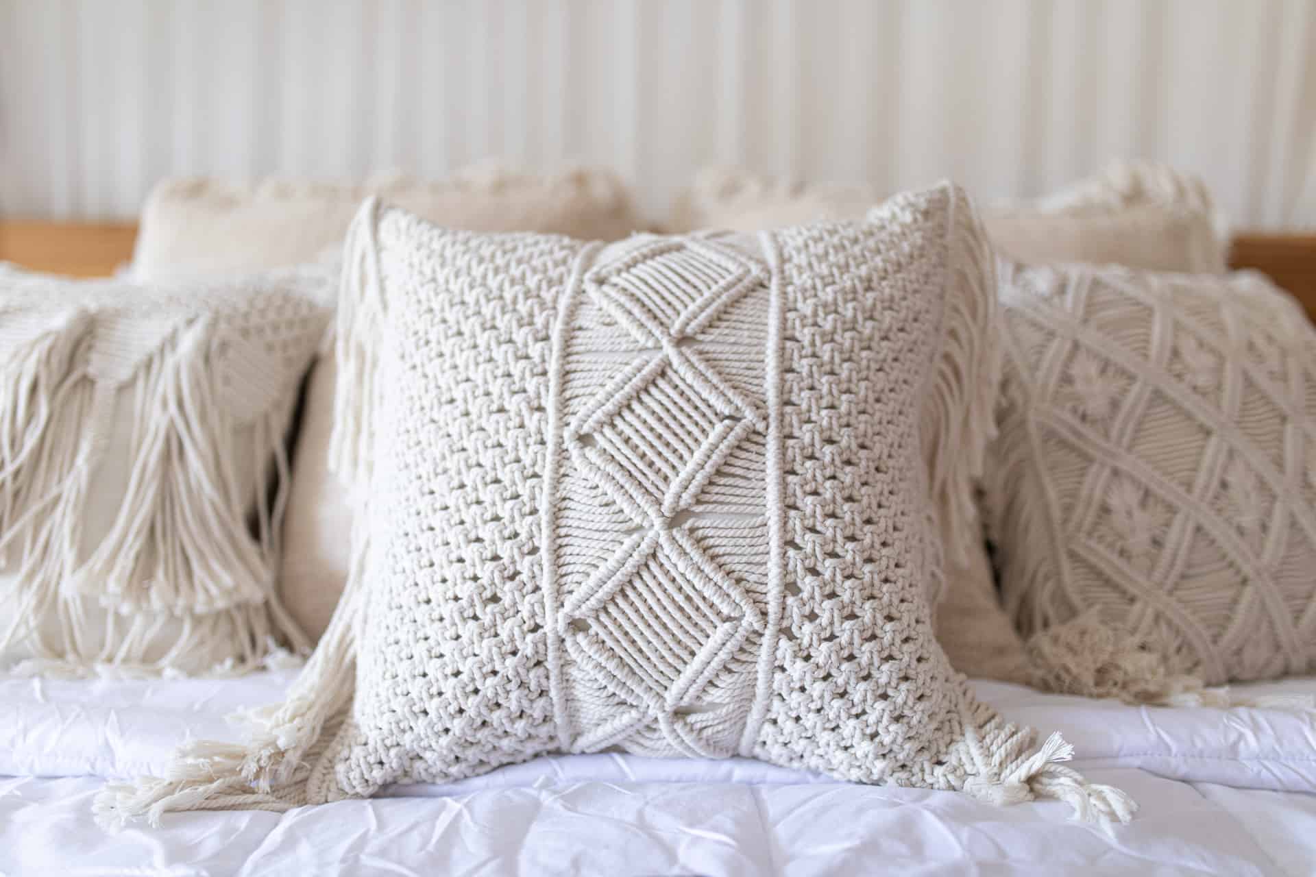 Beschreibung: Geflochtene Makramee-Boho-Kissenbezug TIGA