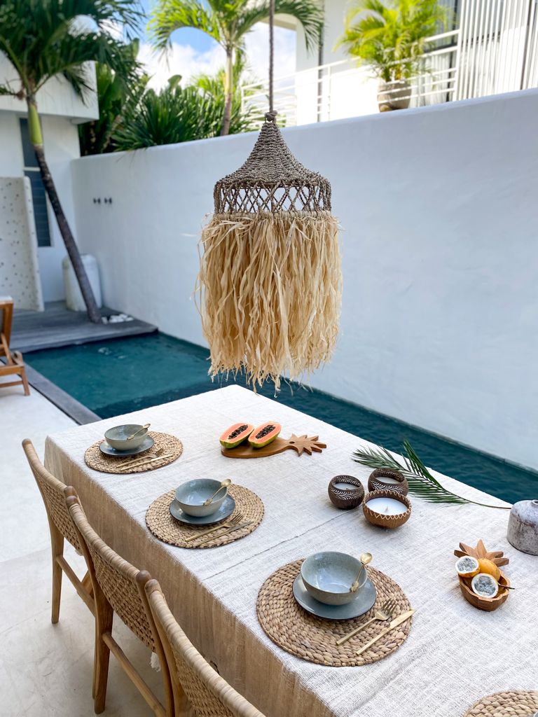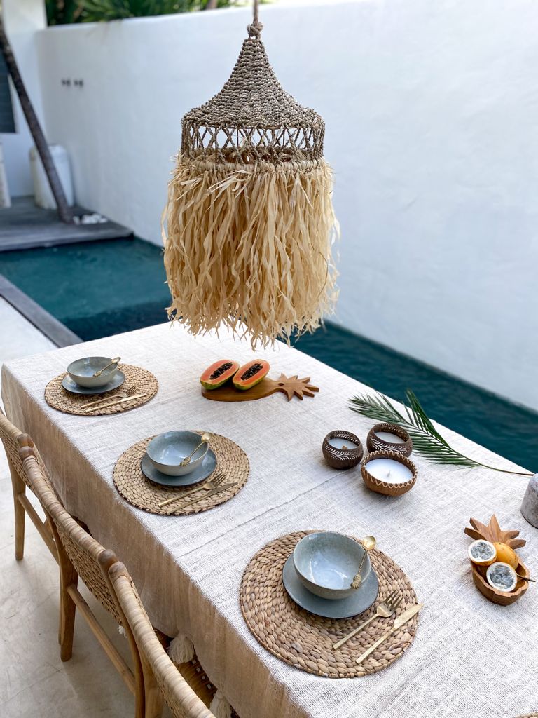 Entdecken Sie den Geflochtenen Lampenschirm ALIF, ein Meisterstück balinesischer Flechtkunst. Dieser Lampenschirm vereint traditionelle Techniken mit modernem Design, um eine warme und einladende Atmosphäre zu schaffen. Ideal für alle, die ihrem Raum eine Note von Natürlichkeit und handwerklicher Qualität hinzufügen möchten.