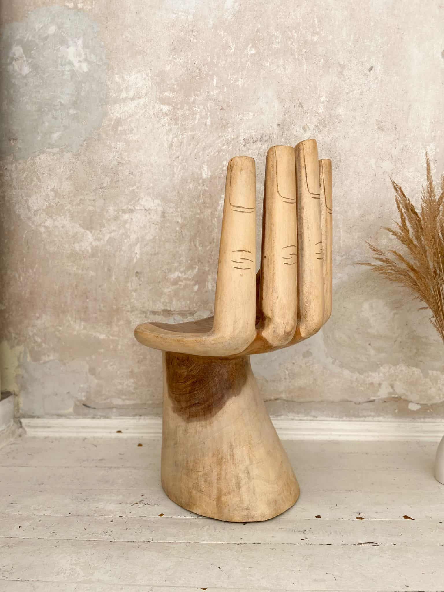 Handstuhl aus Suarholz Bali Bali – Ein Meisterwerk balinesischer Handwerkskunst, der Handstuhl aus Suarholz Bali Bali, bringt Kreativität und Einzigartigkeit in jedes Wohnzimmer. Dieses individuelle Möbelstück, geformt wie eine Hand, bietet nicht nur eine originelle Sitzgelegenheit, sondern ist auch ein ausdrucksstarkes Kunstwerk. Hergestellt aus hochwertigem Suarholz, vereint dieser Stuhl Nachhaltigkeit mit einem einzigartigen Design, perfekt für alle, die nach individuellen Möbelstücken suchen.