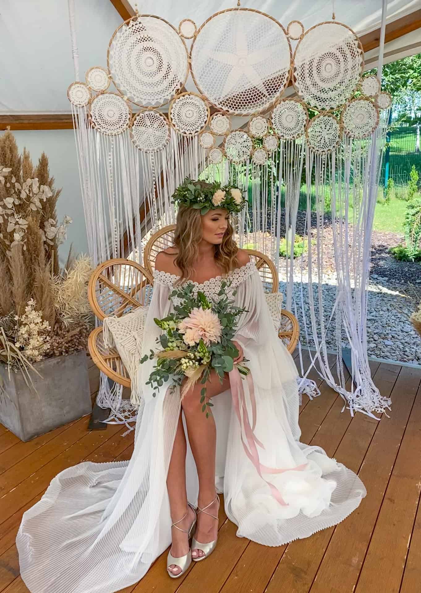 Hochzeit Makramee ISTRI ist eine handgefertigte Schönheit, die jede Boho-Hochzeit mit Eleganz und traditionellem balinesischem Flair bereichert. Dieses exquisite Stück Makramee wurde von erfahrenen Handwerkern auf Bali mit Liebe zum Detail und einer tiefen Achtung für traditionelle Techniken erstellt. ISTRI, was in der balinesischen Sprache ‚Frau‘ bedeutet, symbolisiert die Verbindung und Harmonie zwischen zwei Seelen. Mit seiner beeindruckenden Größe und dem kunstvollen Design ist dieses Makramee ein atemberaubendes Dekorelement, das eine romantische und zugleich erdverbundene Atmosphäre schafft.