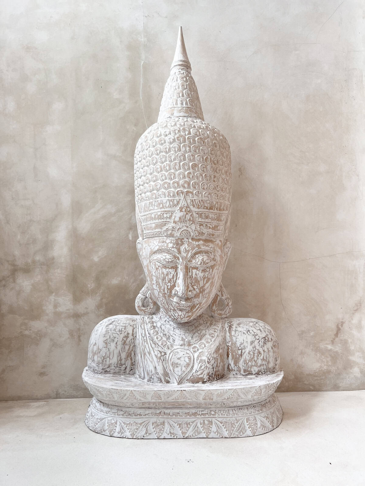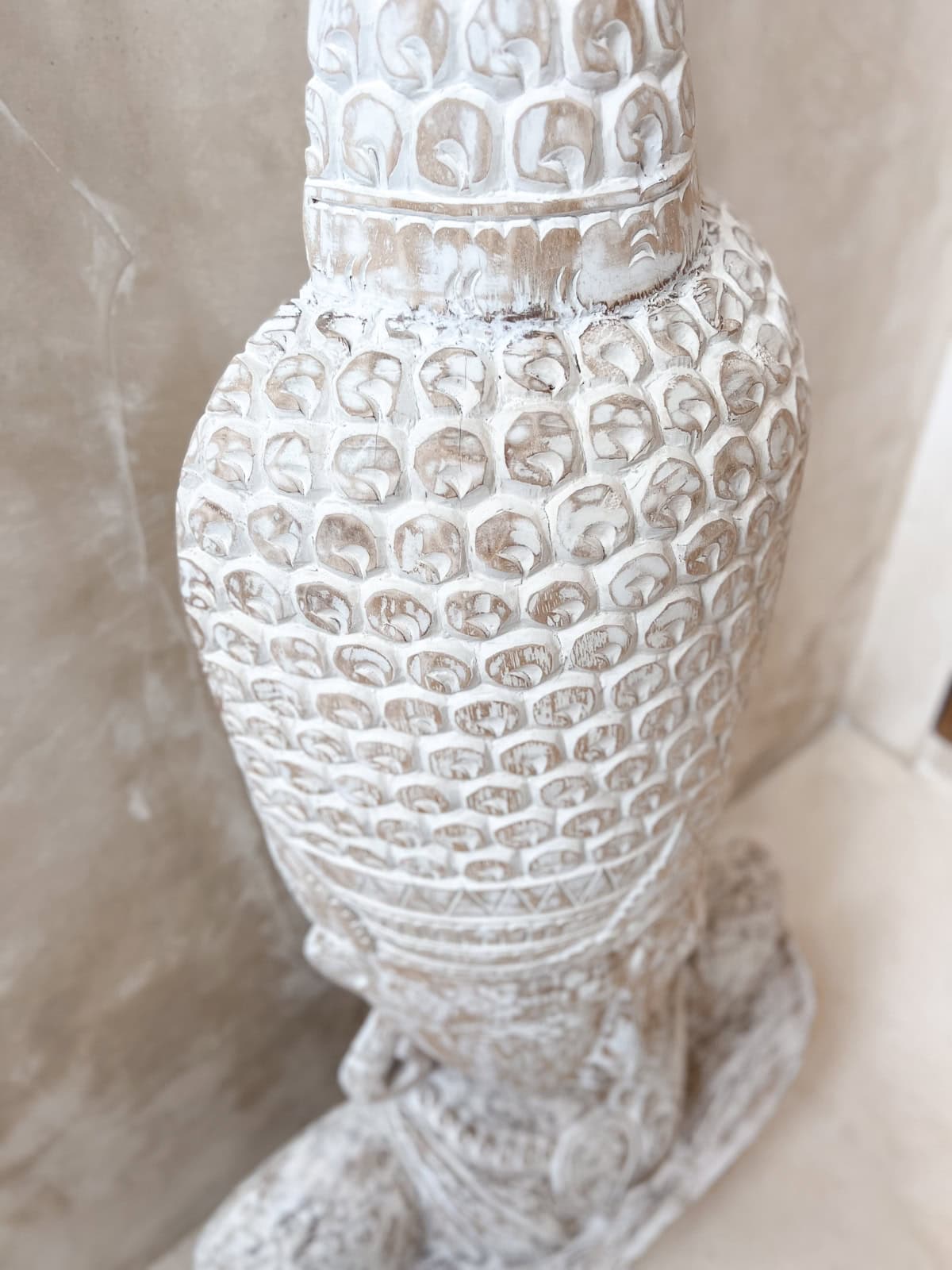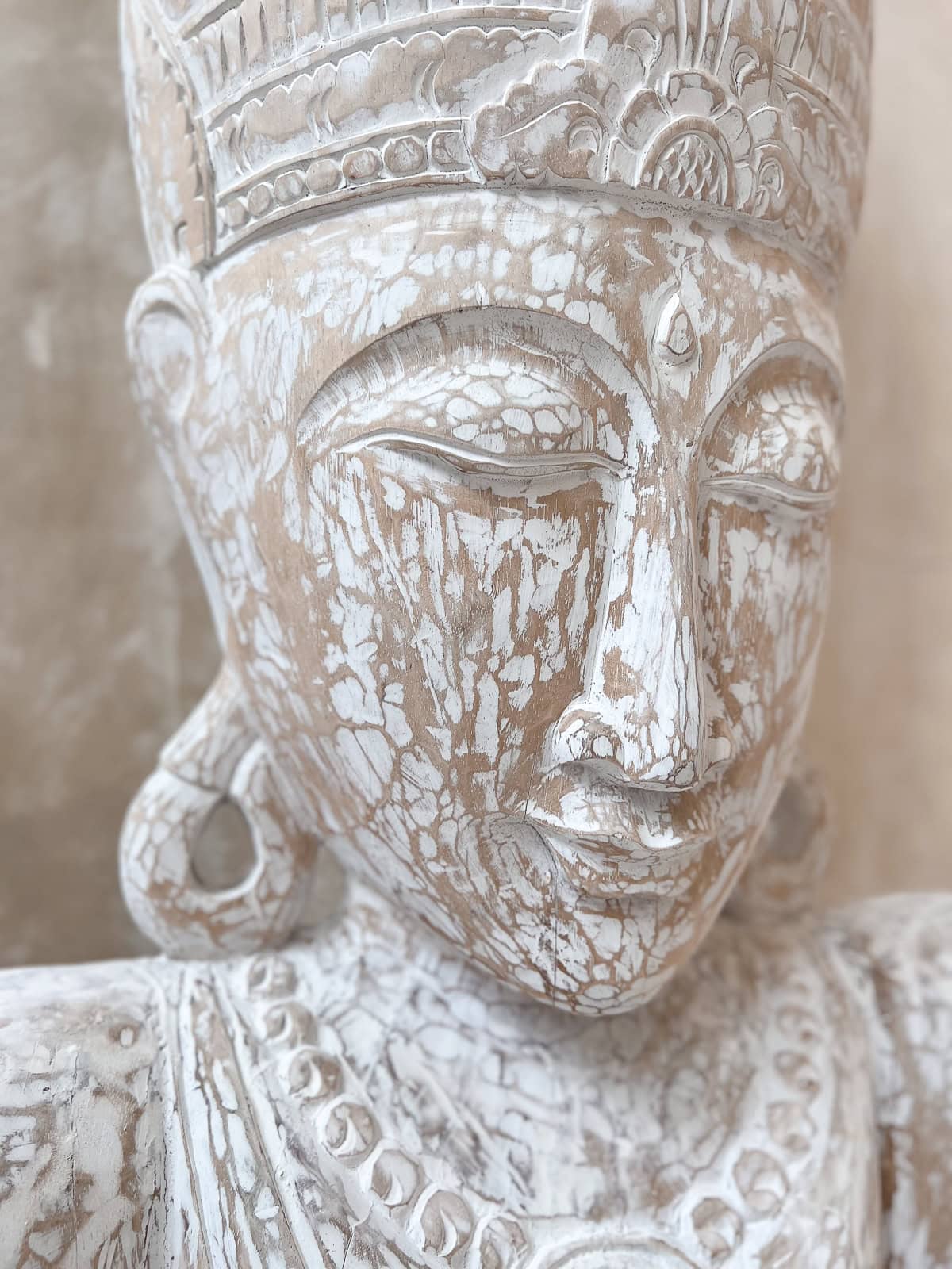 Diese große Holzskulptur ist ein zentrales Statement-Piece – ideal für Wohnzimmer, Yoga- oder Entspannungsbereiche oder einen überdachten Patio. Jeder Schnitt und jedes Detail wurde sorgfältig von balinesischen Meistern gearbeitet – keine zwei Stücke sind identisch.