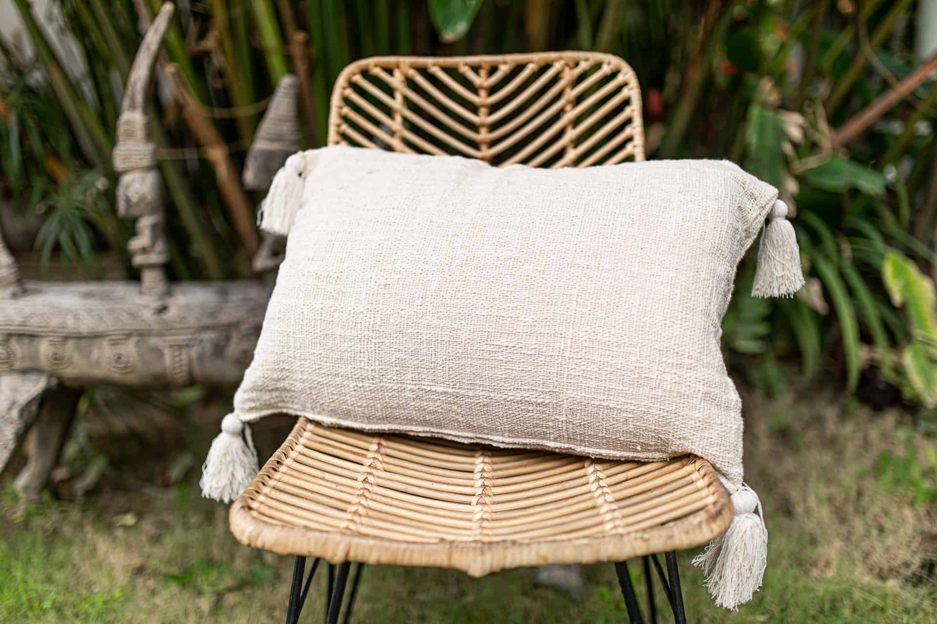 Kissenbezug aus Rohbaumwolle Boho PAGI – Starte deinen Tag mit dem Gefühl von Frische und Natürlichkeit, das der Boho-Stil Kissenbezug PAGI aus Rohbaumwolle bietet. In Bali mit Liebe und Sorgfalt handgefertigt, vereint dieser Kissenbezug umweltfreundliche Praktiken mit authentischem Design. Seine natürlichen Materialien und die sanfte Textur bieten Komfort und Stil, perfekt für jeden, der nachhaltige Textilien und authentische Boho-Dekoration schätzt.