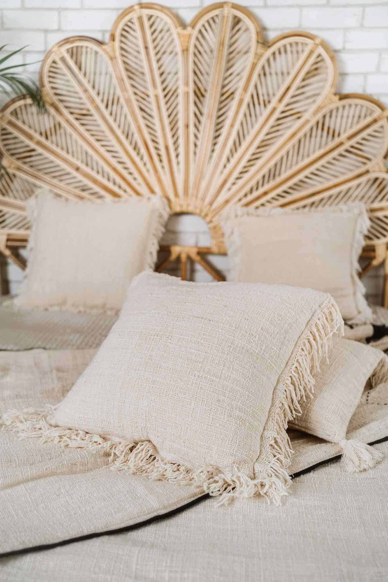 Kissenhülle aus Rohbaumwolle Boho LEMBUT – Verwandle Dein Zuhause in eine Oase der Ruhe mit unserer weichen Baumwollkissenhülle LEMBUT. Hergestellt in Bali, bringt dieses Kissen nicht nur Weichheit in Dein Interieur, sondern auch ein Stück balinesisches Handwerk. Aus ökologisch nachhaltiger Rohbaumwolle gefertigt, verbindet es Boho Design mit ethischem Anspruch, perfekt für alle, die natürliche Textilien und einzigartigen Ethno-Dekor schätzen.