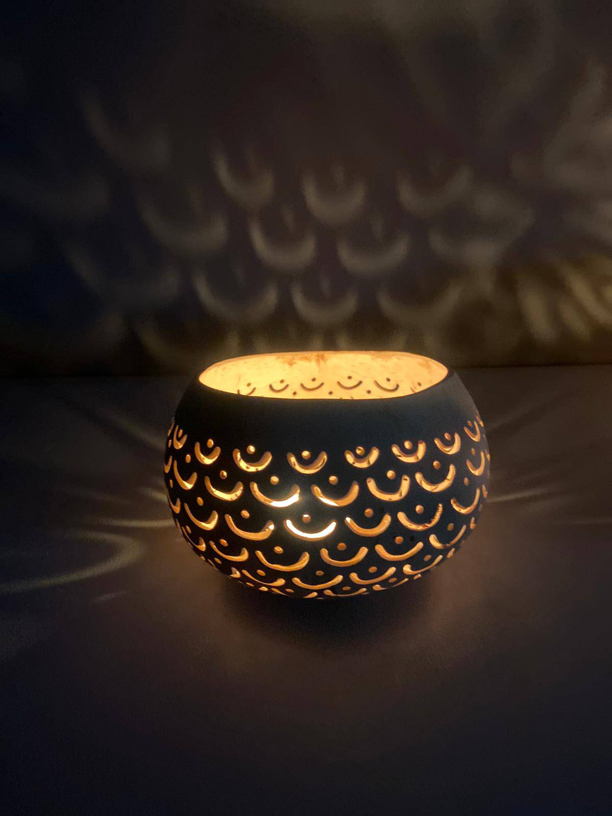 Beschreibung: Kokosnuss Laterne mit Ösenmuster