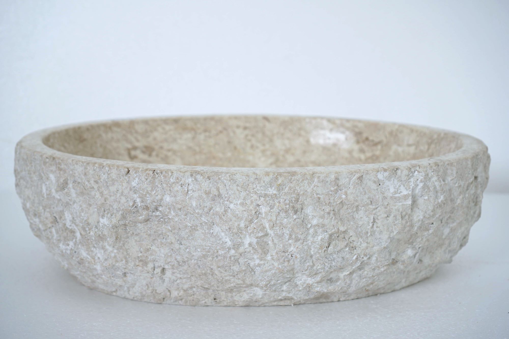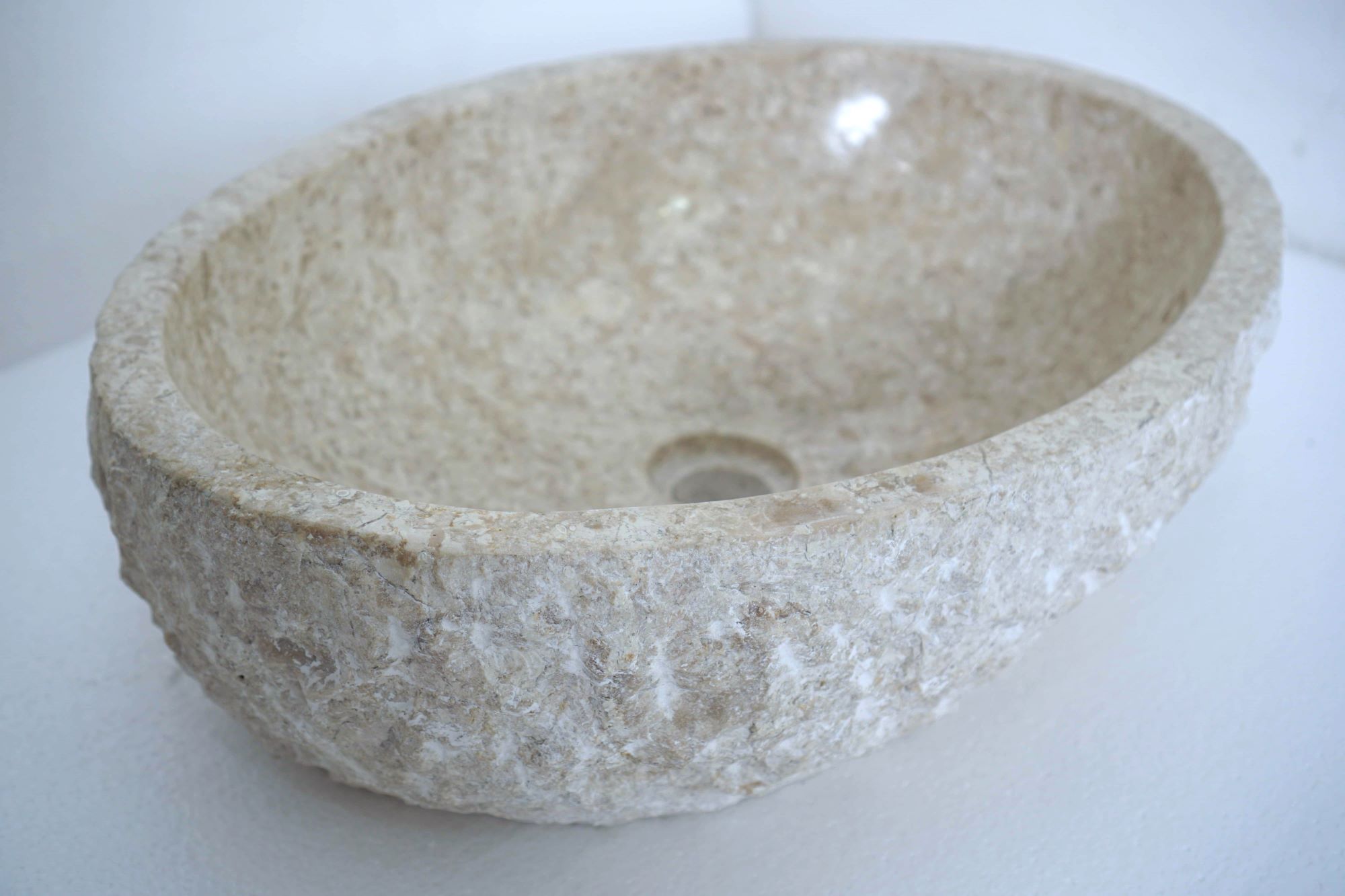 Verleihen Sie Ihrem Badezimmer einen Hauch von Eleganz mit diesem in Bali handgefertigten Marmorwaschbecken. Seine Stein-Naturstruktur und der weiße Marmor ergeben eine harmonische Komposition und unterstreichen den luxuriösen Charakter des Innenraums. Beim Kauf dieses Produkts erhalten Sie das gleiche Waschbecken, das Sie auf dem Foto sehen.