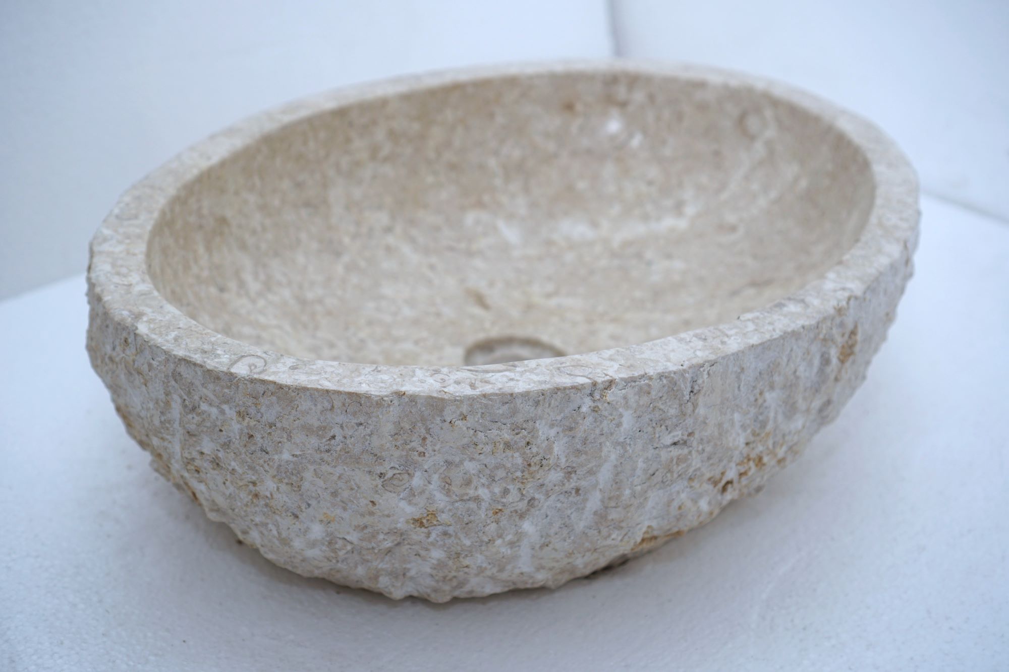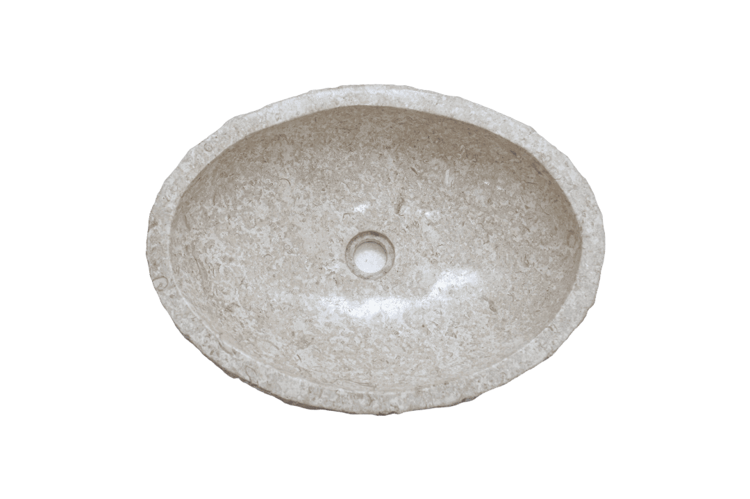 Beleben Sie Ihr Badezimmer mit einem ovalen Marmorwaschbecken, handgeschnitzt auf Bali. Dieses natürliche Einrichtungselement strahlt Klasse und Eleganz aus und unterstreicht den individuellen Charakter Ihres Raumes.
