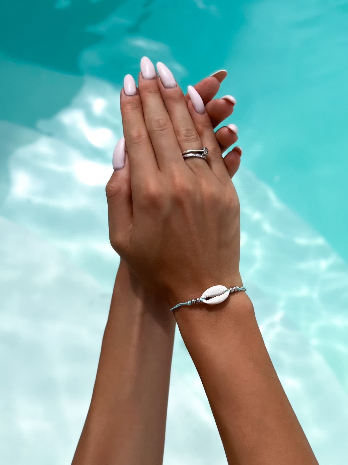 Beschreibung: Blaues Muschelarmband