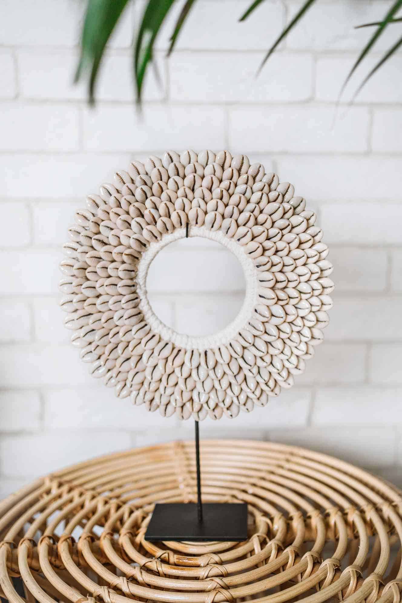 Muscheldekoration M – Bringe mit dieser mittelgroßen, handgemachten Muscheldekoration die Essenz des balinesischen Meeres in dein Zuhause. Perfekt geeignet als Tischdekor, verbindet sie die natürliche Eleganz balinesischer Muscheln mit feiner Handwerkskunst. Jedes Stück ist mit Liebe zum Detail gefertigt, bietet einen natürlichen, ethnischen Touch und zelebriert die Schönheit der Natur und des Boho-Stils.