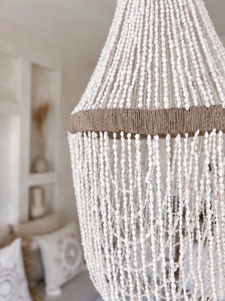 Muschel-Kronleuchter MADI – Der MADI Muschelleuchter vereint traditionelle Handwerkskunst mit Meeresinspiration, um Ihre Wohnkultur mit einem Hauch von Bohemian Stil und natürlichem Charme zu bereichern. Diese stimmungsvolle Beleuchtung, gefertigt aus nachhaltigen Materialien, verspricht eine einladende Atmosphäre in jedem Raum. Mit einer beeindruckenden Höhe von 90 cm und einem Durchmesser von 40 cm, wird MADI zum zentralen Blickfang Ihrer Einrichtung.