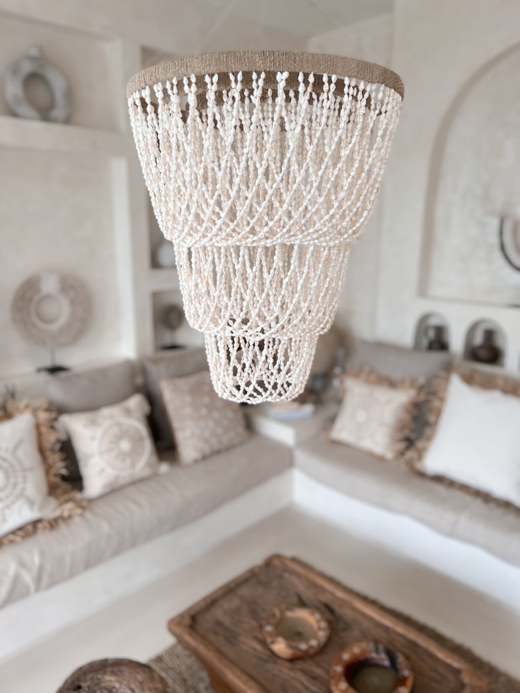 Muschel-Kronleuchter Weiß NATI – Der NATI Muschelleuchter bringt maritimes Flair und elegante Beleuchtung in Ihr Zuhause. Als Symbol für Strandhaus-Dekor und handgemachte Kunst, nutzt dieser öko-freundliche Kronleuchter weiße Muscheln für eine einzigartige Wohnkultur. Mit einer Gesamtlänge von 70 cm und einem Durchmesser von 40 cm, ist NATI eine ausgezeichnete Wahl für alle, die nachhaltige Eleganz schätzen.
