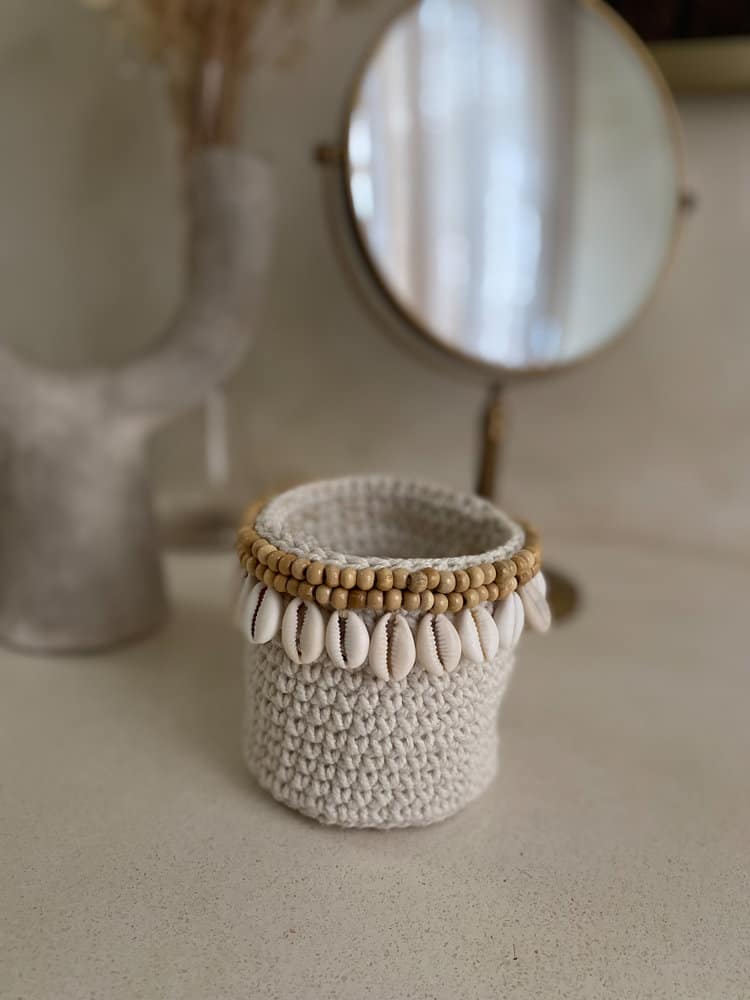 Dank seiner natürlichen Ästhetik und der sorgfältigen Arbeit unseres Lieferanten ist dieser Schmuckkorb nicht nur ein praktischer Ort zum Aufbewahren Ihrer Lieblingsaccessoires, sondern auch ein wunderschönes Dekorationselement, das jedem Interieur Charme verleiht. Vielleicht kennen Sie diese handgenähten Kaurischnecken bereits von unserem Boho-Schmuck.