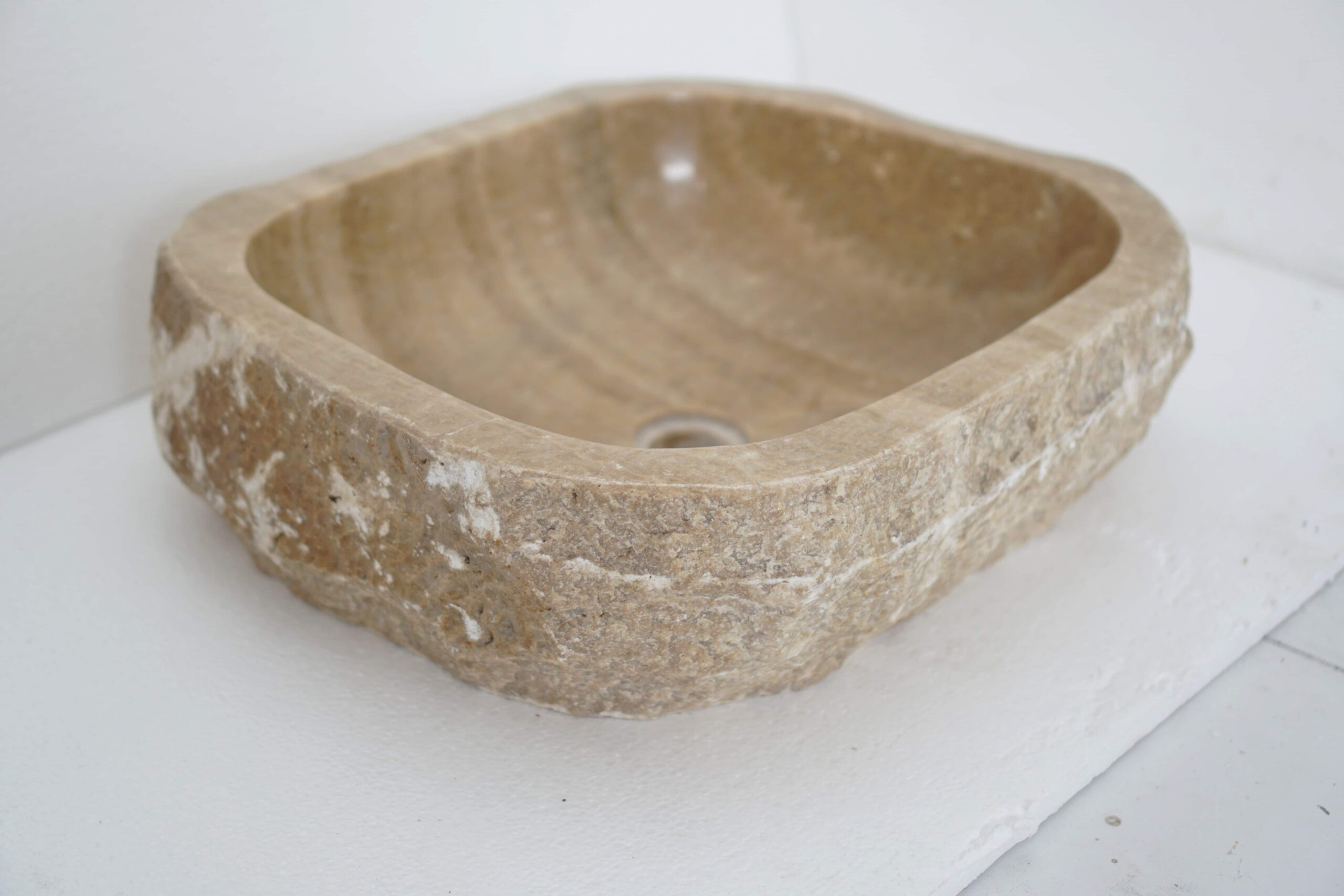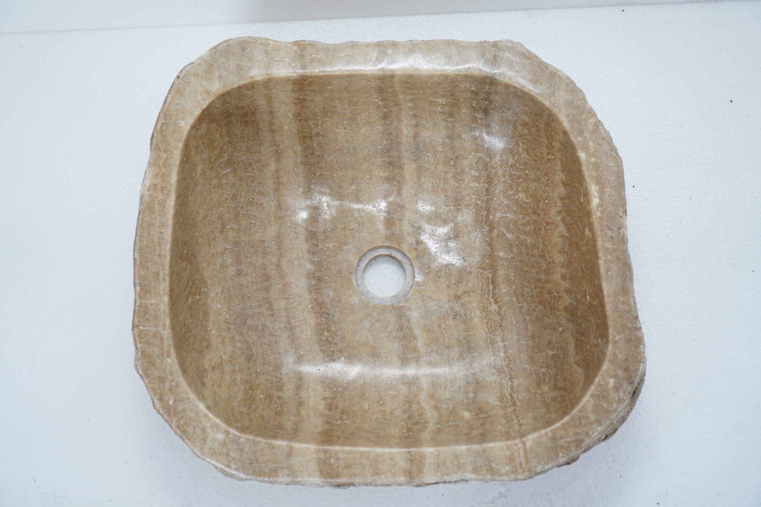 Entdecken Sie ein echtes Kunstwerk – ein auf Bali handgeschmiedetes Onyx-Waschbecken. Jedes Stück dieses Steinwaschbeckens ist einzigartig und einzigartig, und keines gleicht dem anderen. Handwerker aus Bali widmen viele Stunden präziser Arbeit, um jedes Detail zu schaffen und so höchste Verarbeitungsqualität zu gewährleisten. Die Waschtischoberfläche aus natürlichem Onyx offenbart die Schönheit der Natur und präsentiert eine Vielfalt an Farben und einzigartigen Mustern. Dieses handgeschmiedete Aufsatzwaschbecken ist die perfekte Kombination aus Ästhetik, Funktionalität und Tradition, die Ihr Badezimmer mit einem exotischen und eleganten Akzent bereichert.