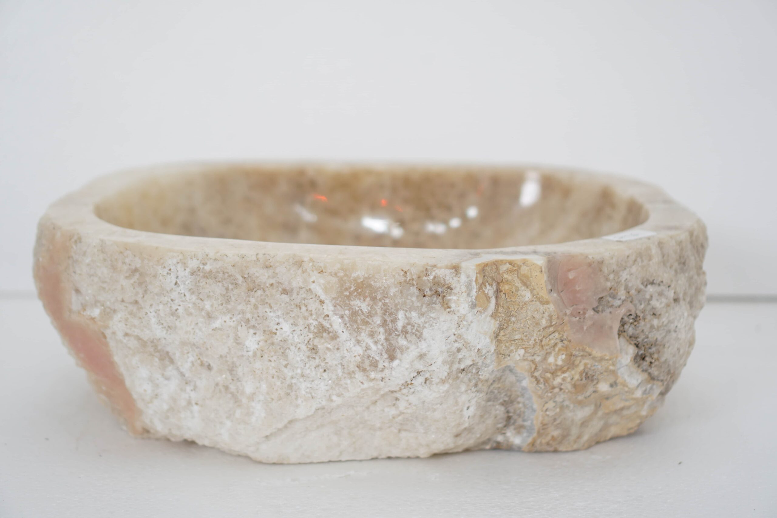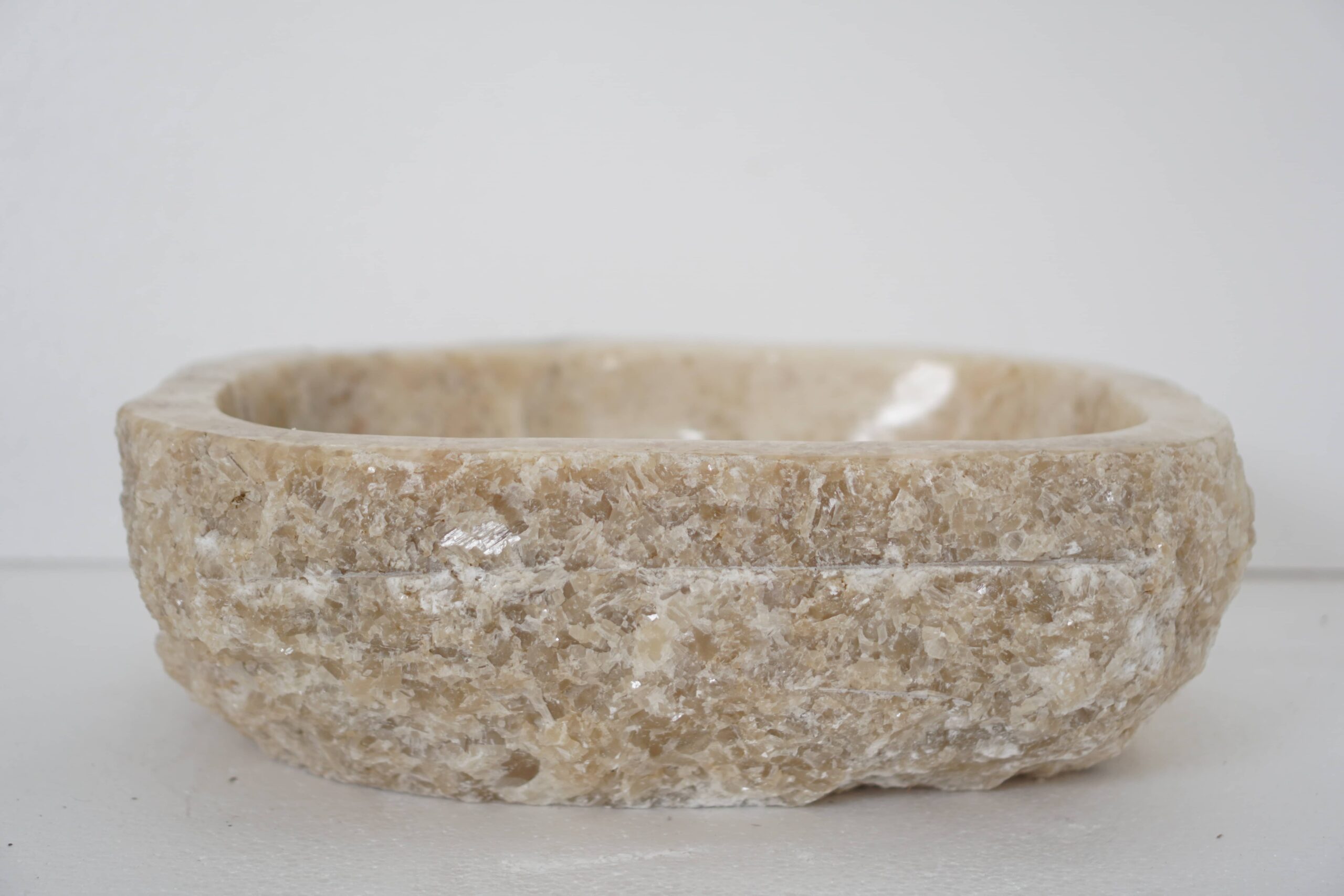 Schaffen Sie eine einzigartige Atmosphäre in Ihrem Badezimmer mit diesemOnyx-Waschbecken aus Naturstein. Es handelt sich um ein Produkt, das auf der indonesischen Insel Bali geschmiedet wurde. Da kein Stein dem anderen gleicht, können Sie sicher sein, dass Ihr Aufsatzwaschbecken einzigartig ist.