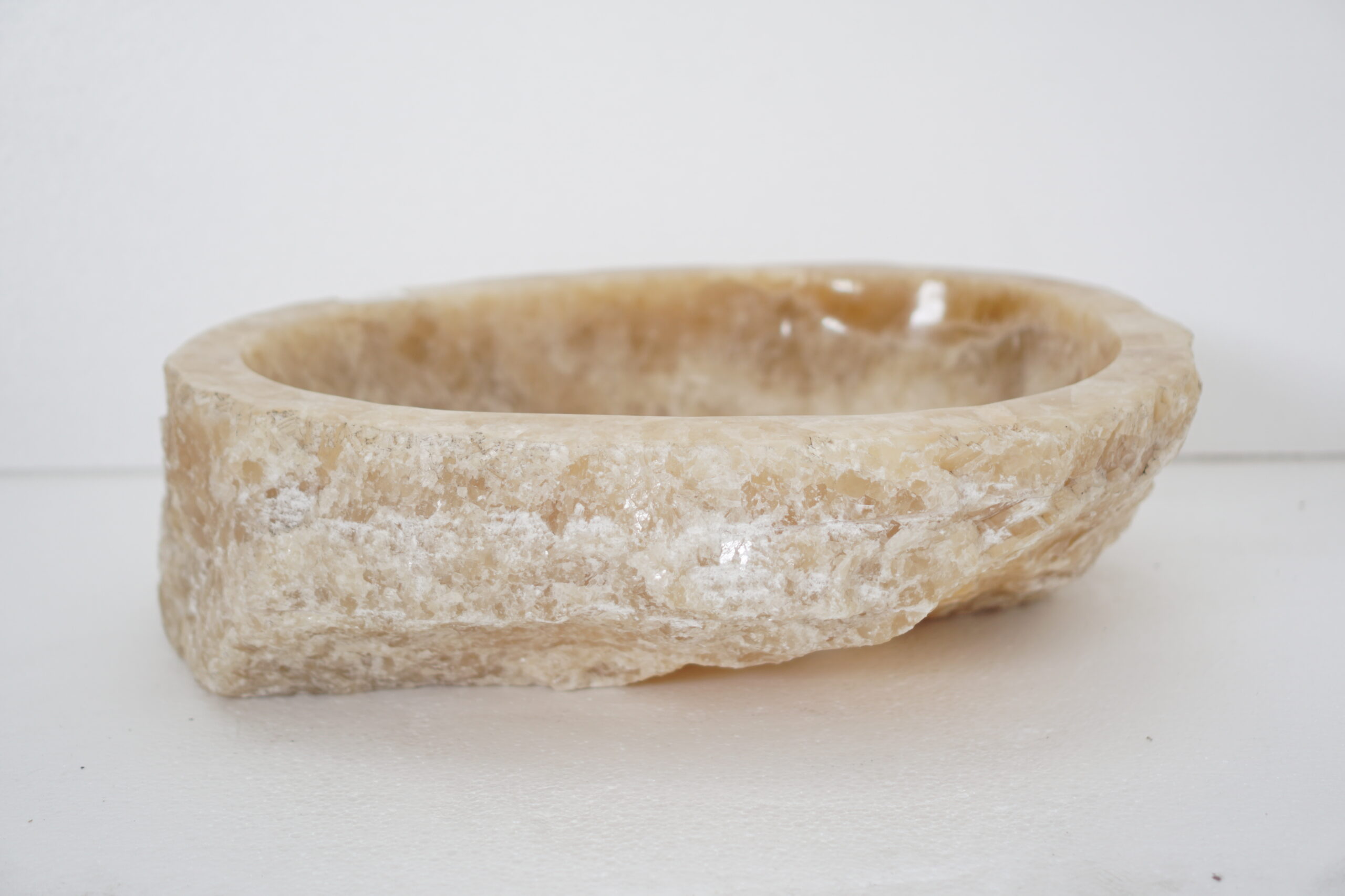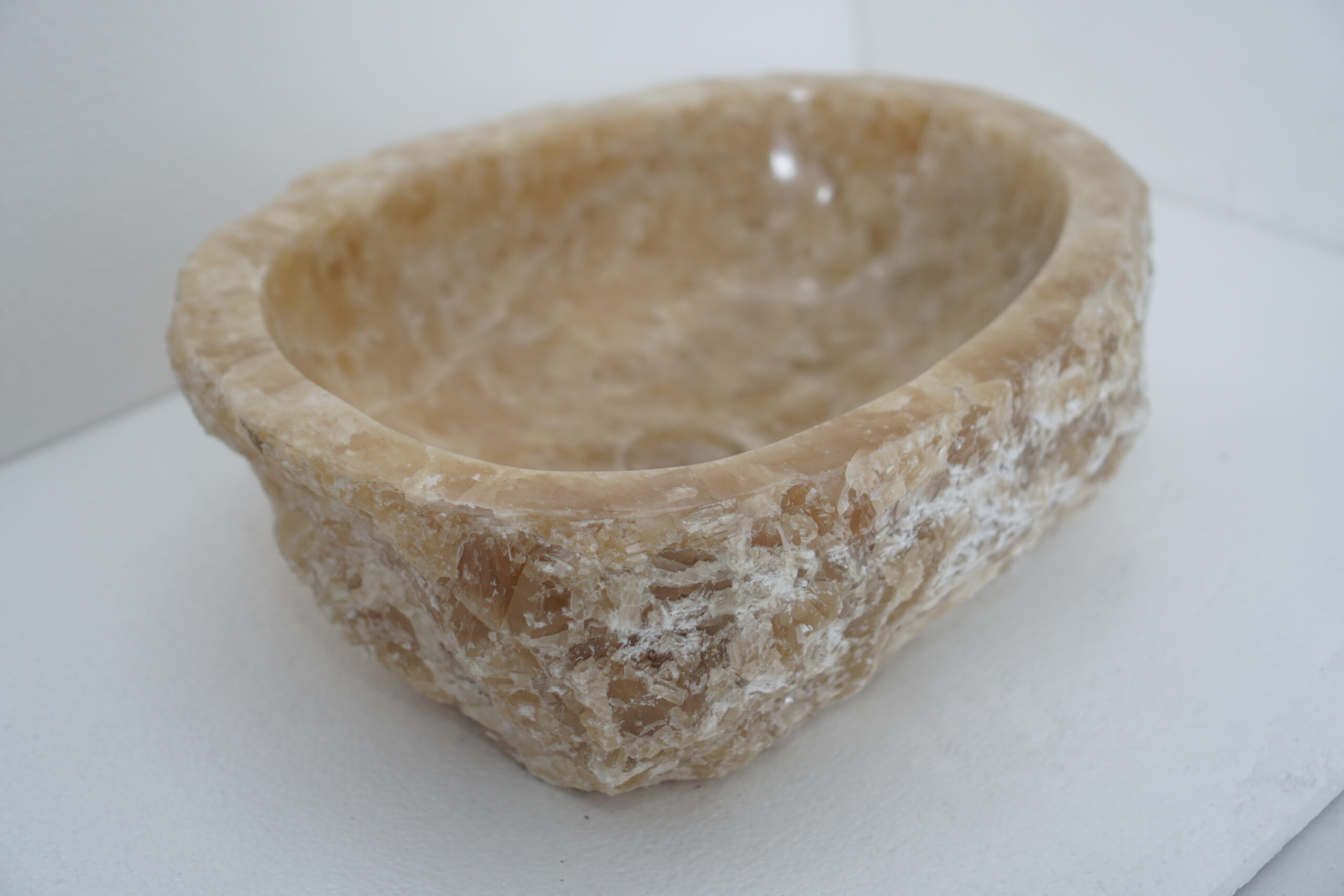 Dieses handgeschmiedete Aufsatzwaschbecken aus Onyx ist ein echtes Juwel, das Ihrem Badezimmer Luxus und einzigartigen Charakter verleiht. Seine natürliche Struktur mit tiefen Onyxtönen und eleganten Mustern macht Ihr Badezimmer zu einem Ort, an dem Kunst auf Funktionalität trifft.
