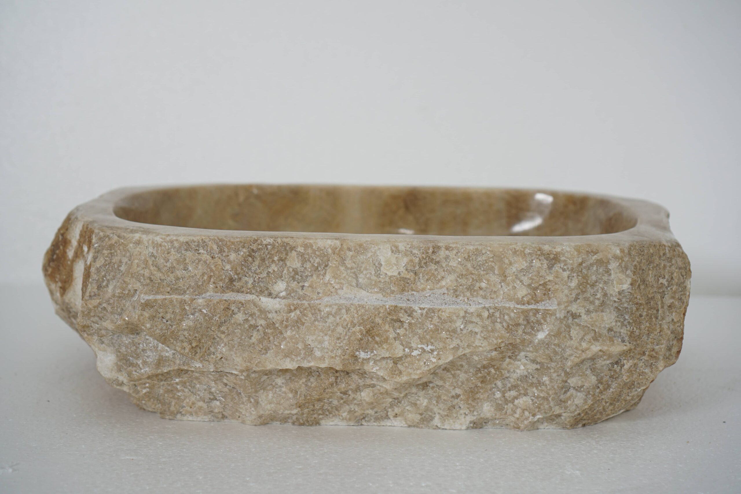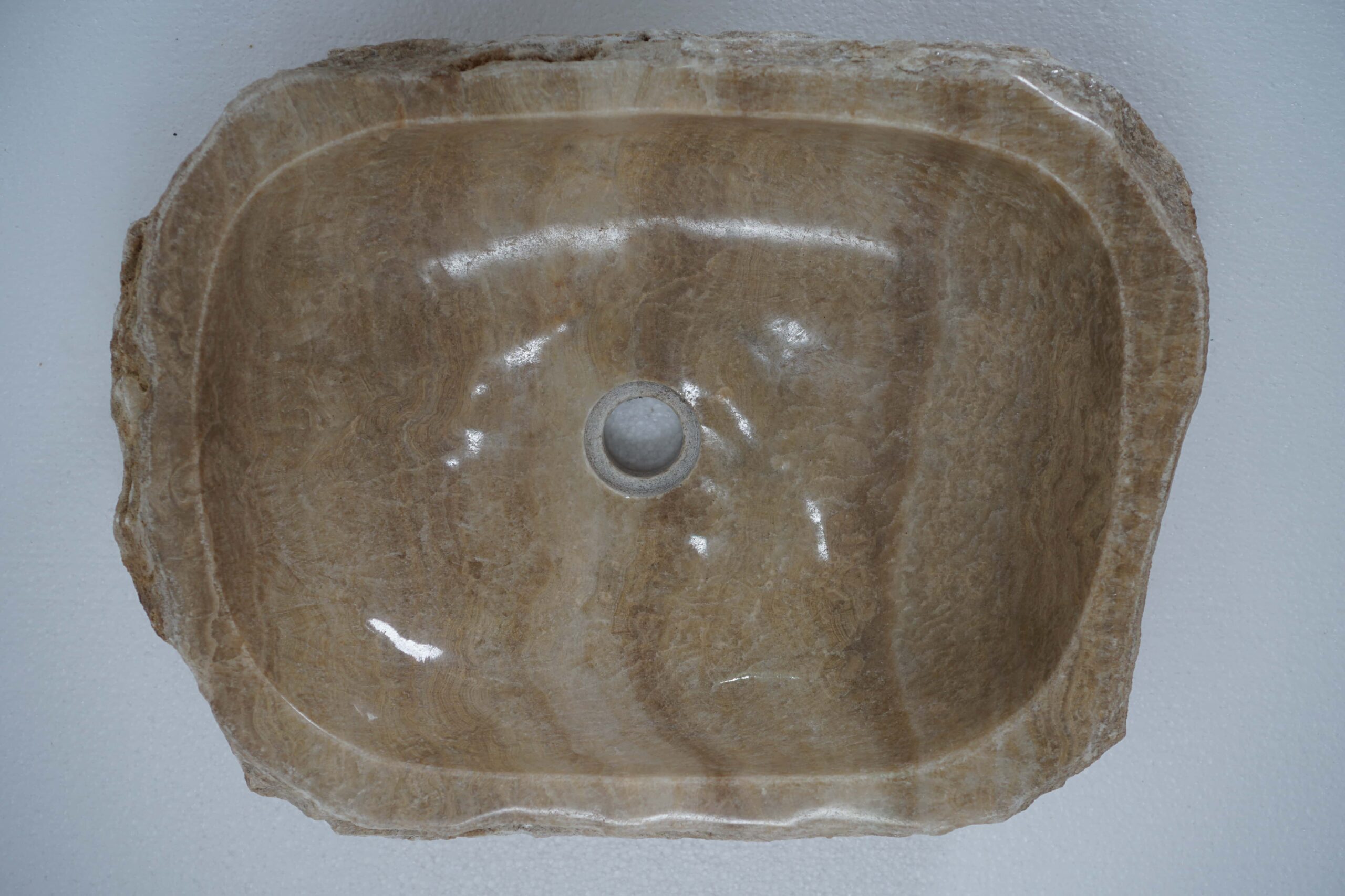 Schaffen Sie einen einzigartigen Badezimmerraum mit diesem handgeschnitzten Onyx-Waschbecken aus Naturstein. Seine einzigartigen Muster, natürlichen Farben und sein elegantes Design schaffen eine harmonische Komposition, die ins Auge fällt und Ihrem Badezimmer Charakter verleiht. Dieses Aufsatzwaschbecken mit Onyx ist eine ausgezeichnete Wahl für alle, die Funktionalität mit Ästhetik verbinden möchten und Wert auf die Authentizität und Langlebigkeit von Naturstein legen.