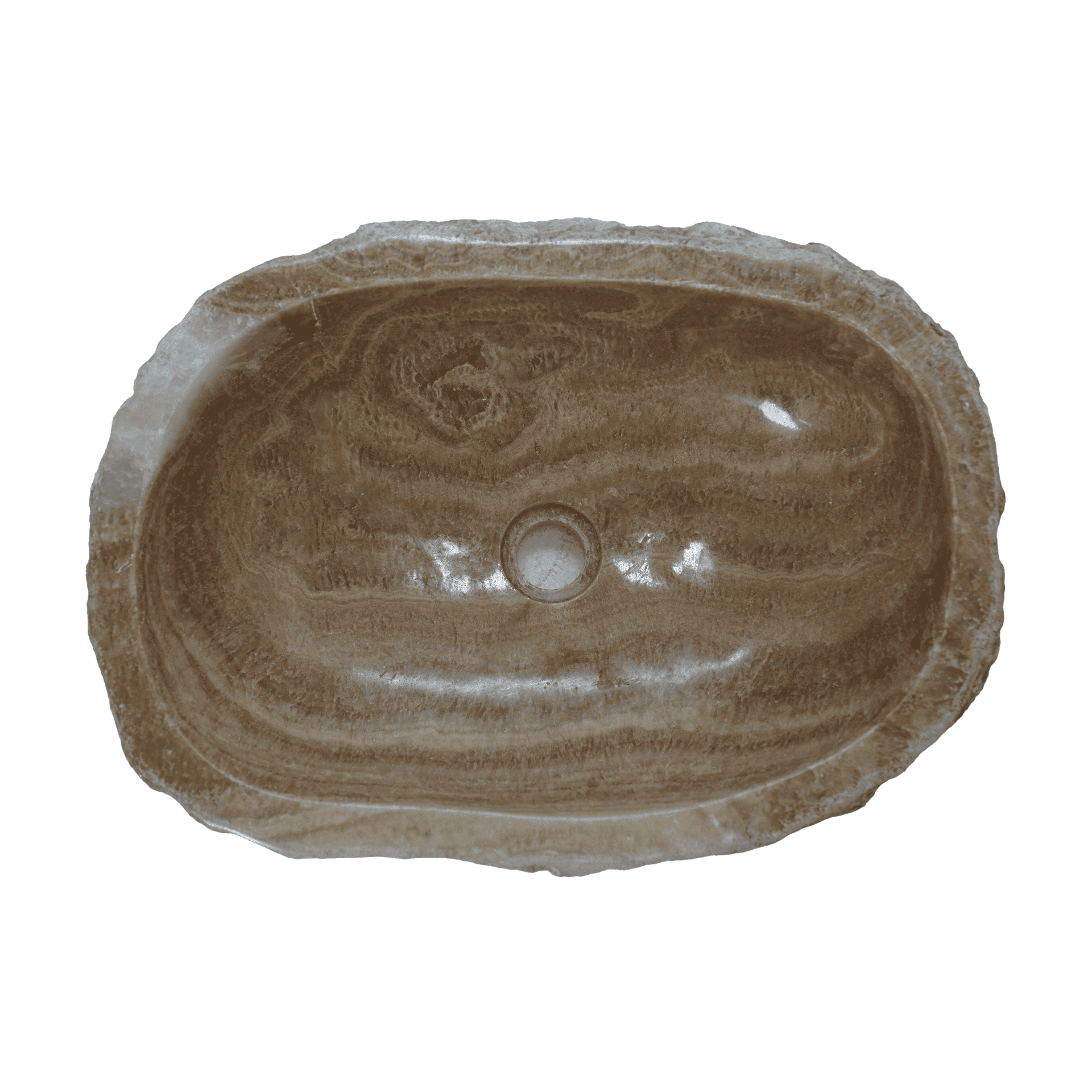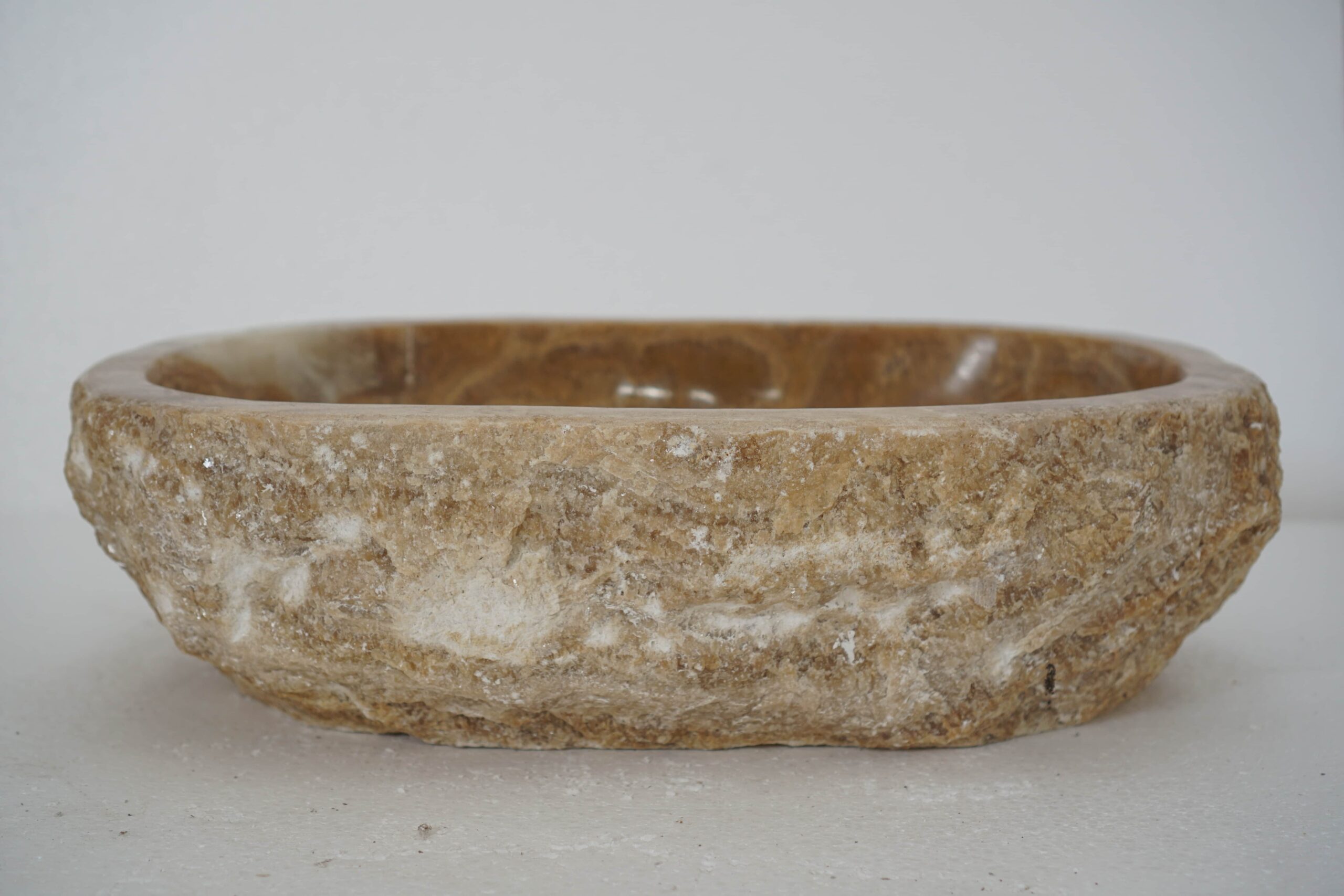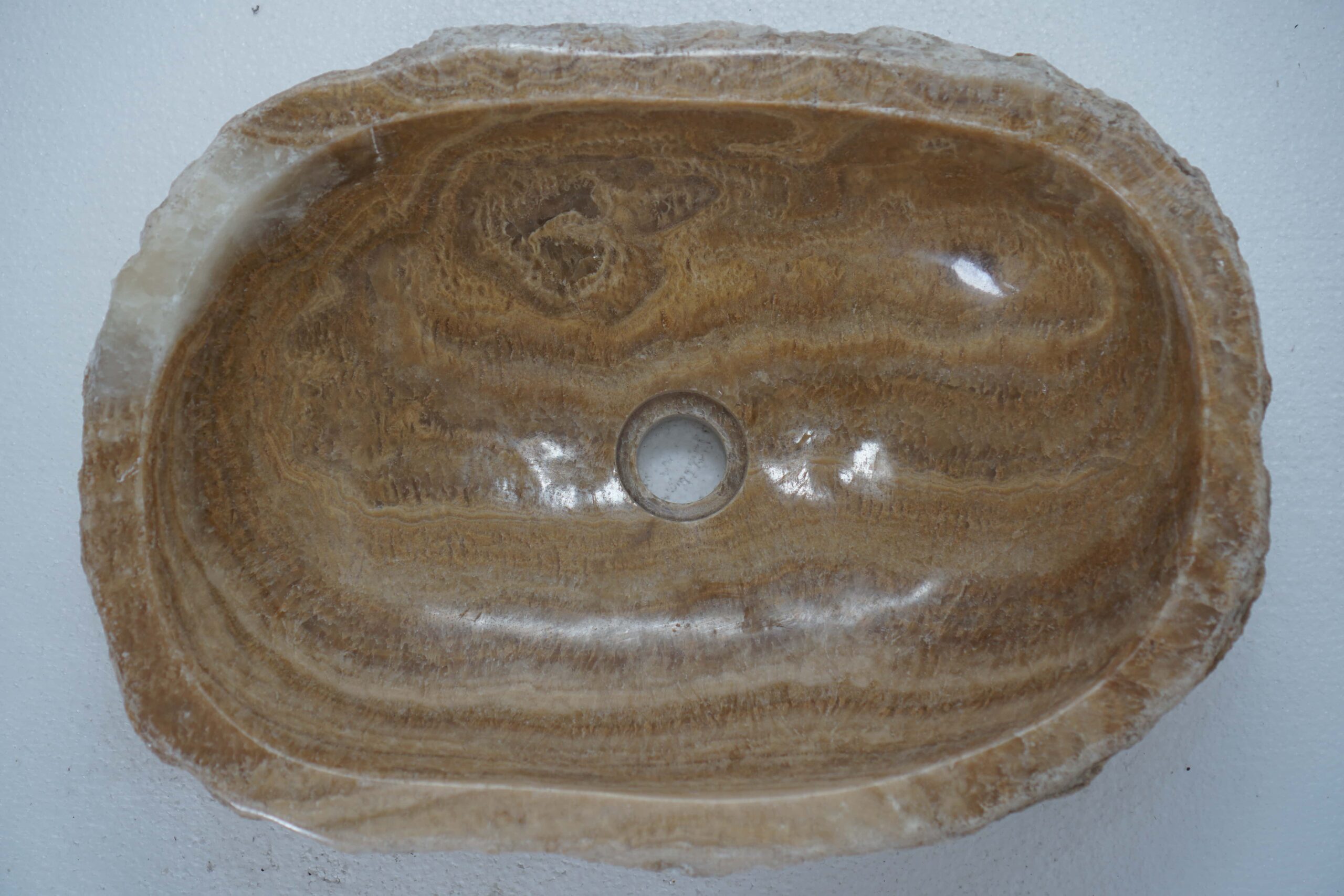 Dieses Becken aus Onyxstein wurde auf Bali handgeschnitzt. Jedes Stück wird individuell von balinesischen Handwerkern gefertigt, die über unübertroffene Fähigkeiten in der Arbeit mit Onyx verfügen. Wirkung? Ein Waschbecken mit einer einzigartigen Struktur, wunderschönen Mustern und einer reichen Farbpalette, die für natürlichen Onyx charakteristisch ist. Es ist nicht nur ein funktionales Steinwaschbecken, sondern auch ein echtes Kunstwerk, das die Einzigartigkeit Ihres Badezimmers hervorhebt.