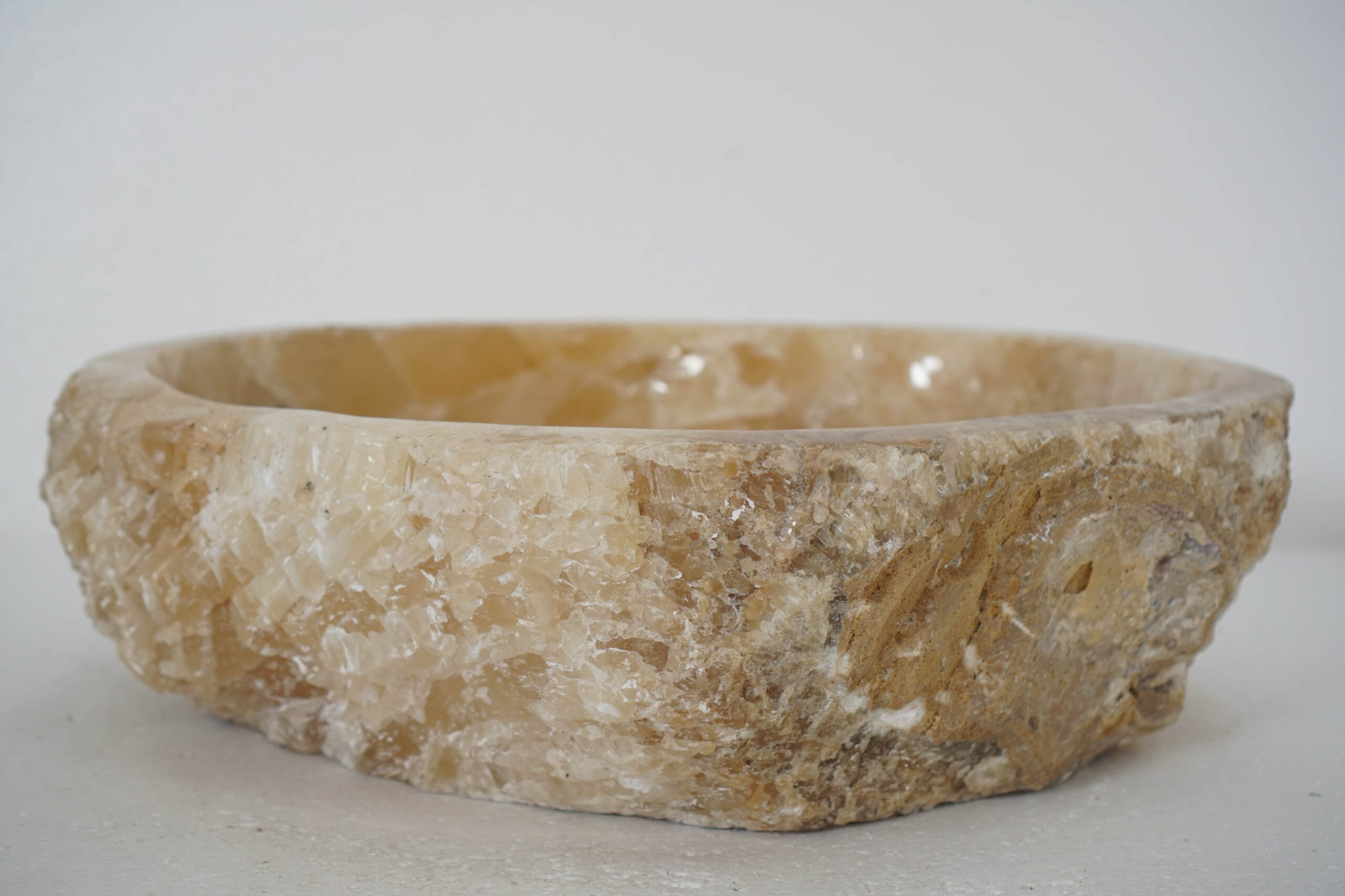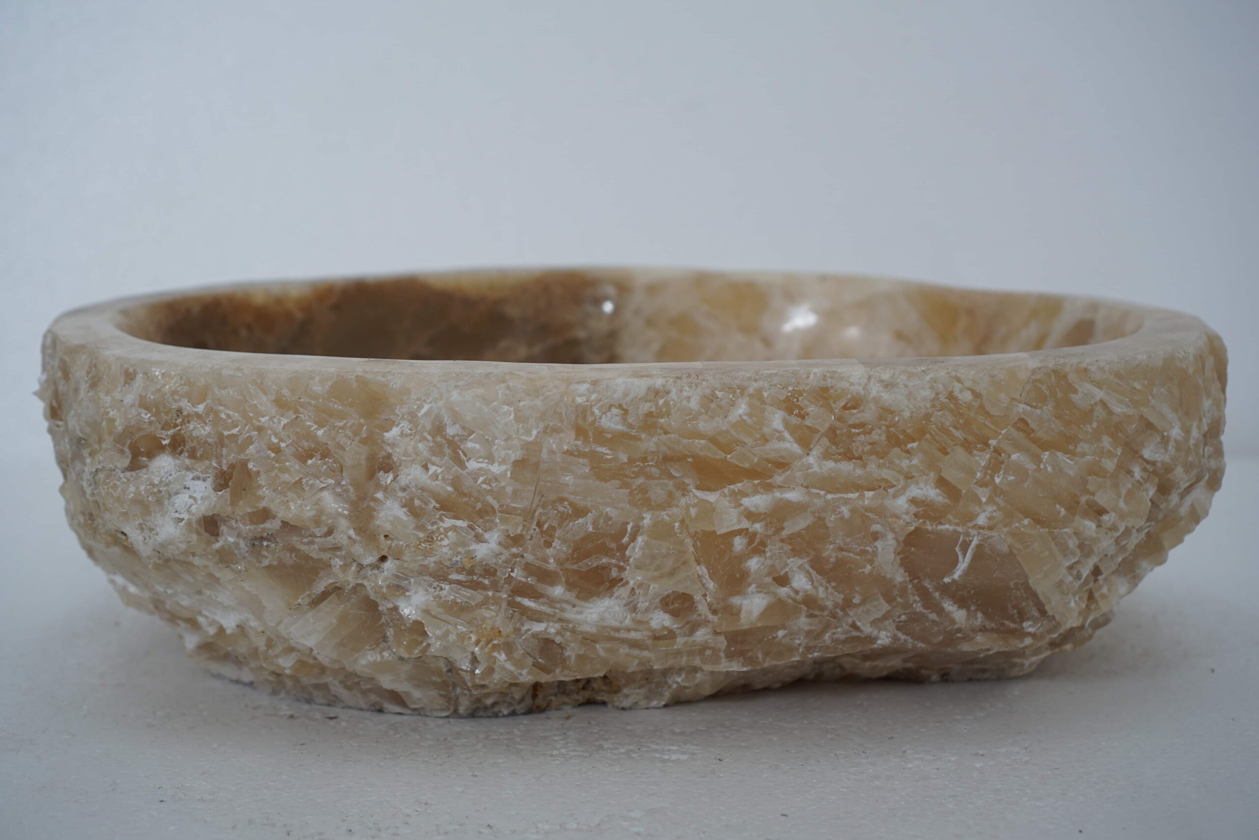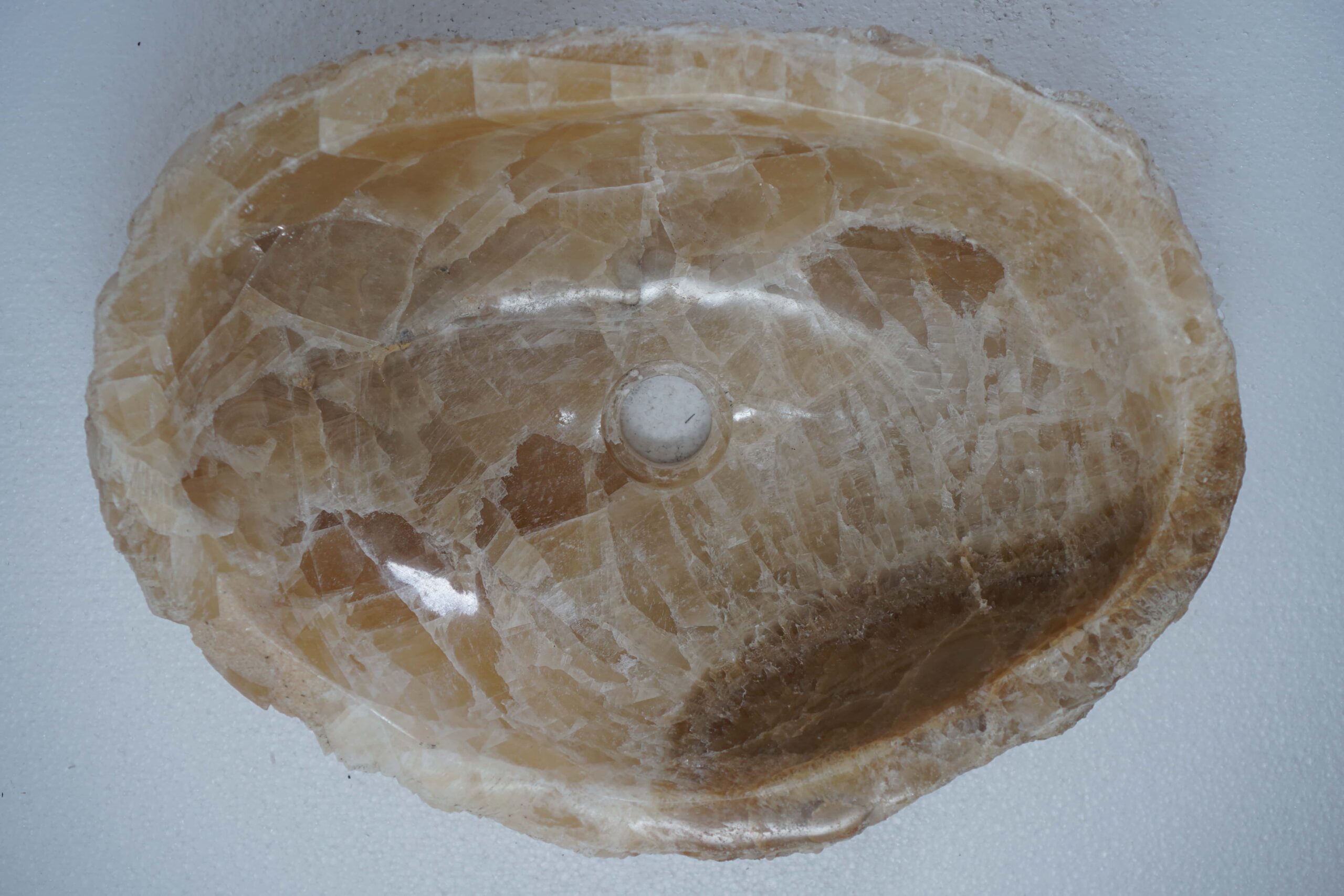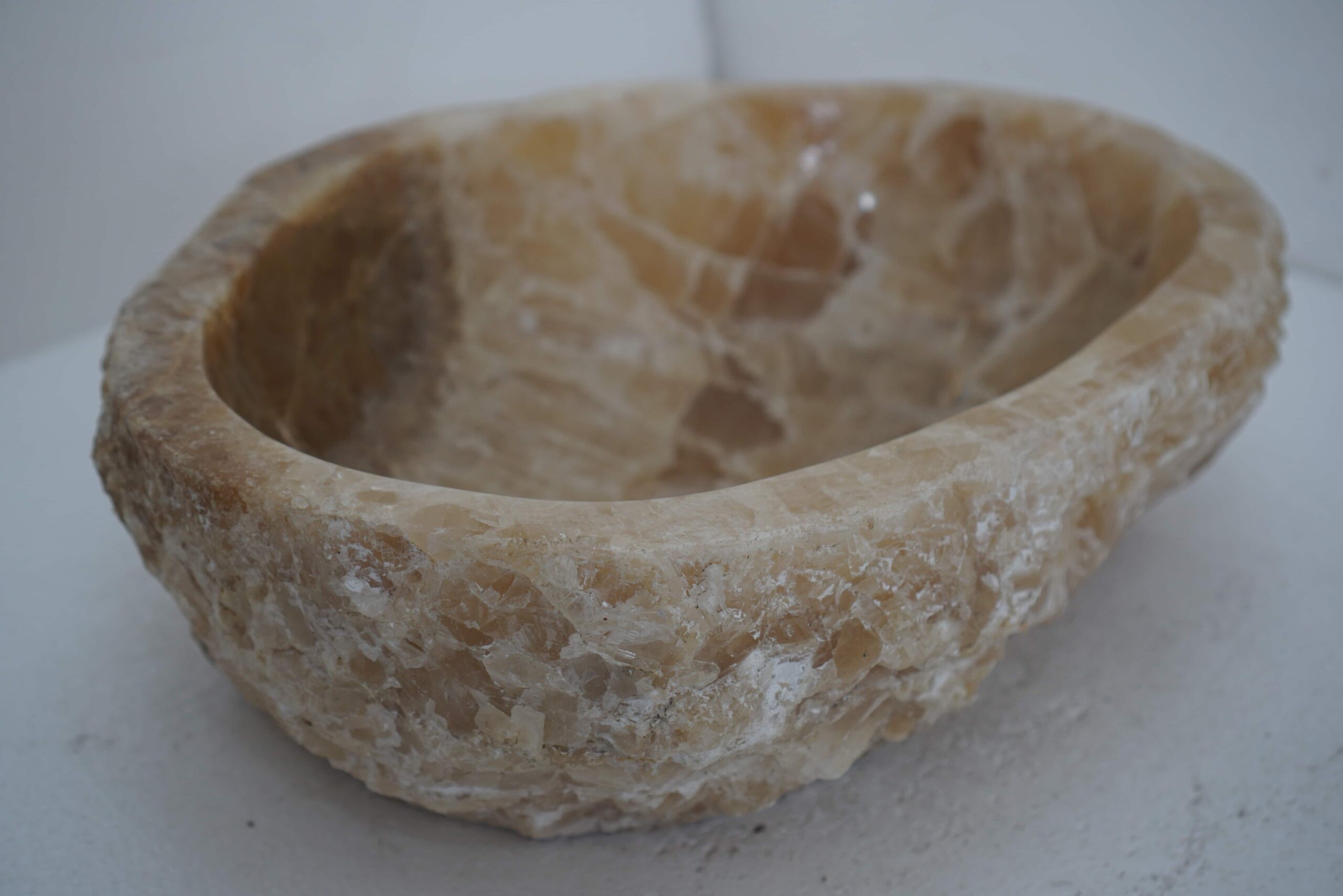 Erstellen Sie ein Badezimmerdesign voller Charakter mit diesem Aufsatzwaschbecken aus Onyx, das von meisterhaften balinesischen Handwerkern handgeschmiedet wird. Jedes Stück wird sorgfältig geformt und die Details werden mit Präzision und Feingefühl gefertigt. Durch diese Kombination aus handgefertigter Arbeit und natürlichem Onyx entsteht ein einzigartiges Waschbecken, dessen Einzigartigkeit die Authentizität jedes einzelnen Stücks unterstreicht. Seine glatte Oberfläche, schöne Muster und dezente Onyxtöne verleihen dem Badezimmer Eleganz und einen einzigartigen Charakter. Dieses außergewöhnliche Werk balinesischer Handwerkskunst ist nicht nur funktional, sondern auch eine Dekoration, die Aufmerksamkeit erregt und den Badezimmerraum bereichert.