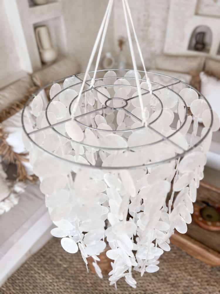 Perlmutt Kronleuchter CERIA – Der CERIA Perlmutt Kronleuchter bringt fröhliche Beleuchtung und handgefertigte Eleganz in Ihr Zuhause. Dieses Leuchtobjekt aus natürlichem Glanz und im Boho Chic Stil bietet nicht nur nachhaltiges Design, sondern auch eine einzigartige Dekoration für jeden Raum. Mit einer Höhe von 45 cm und einem Durchmesser von 30 cm ist die CERIA Lampe eine strahlende Ergänzung, die Gemütlichkeit und Stil verspricht.