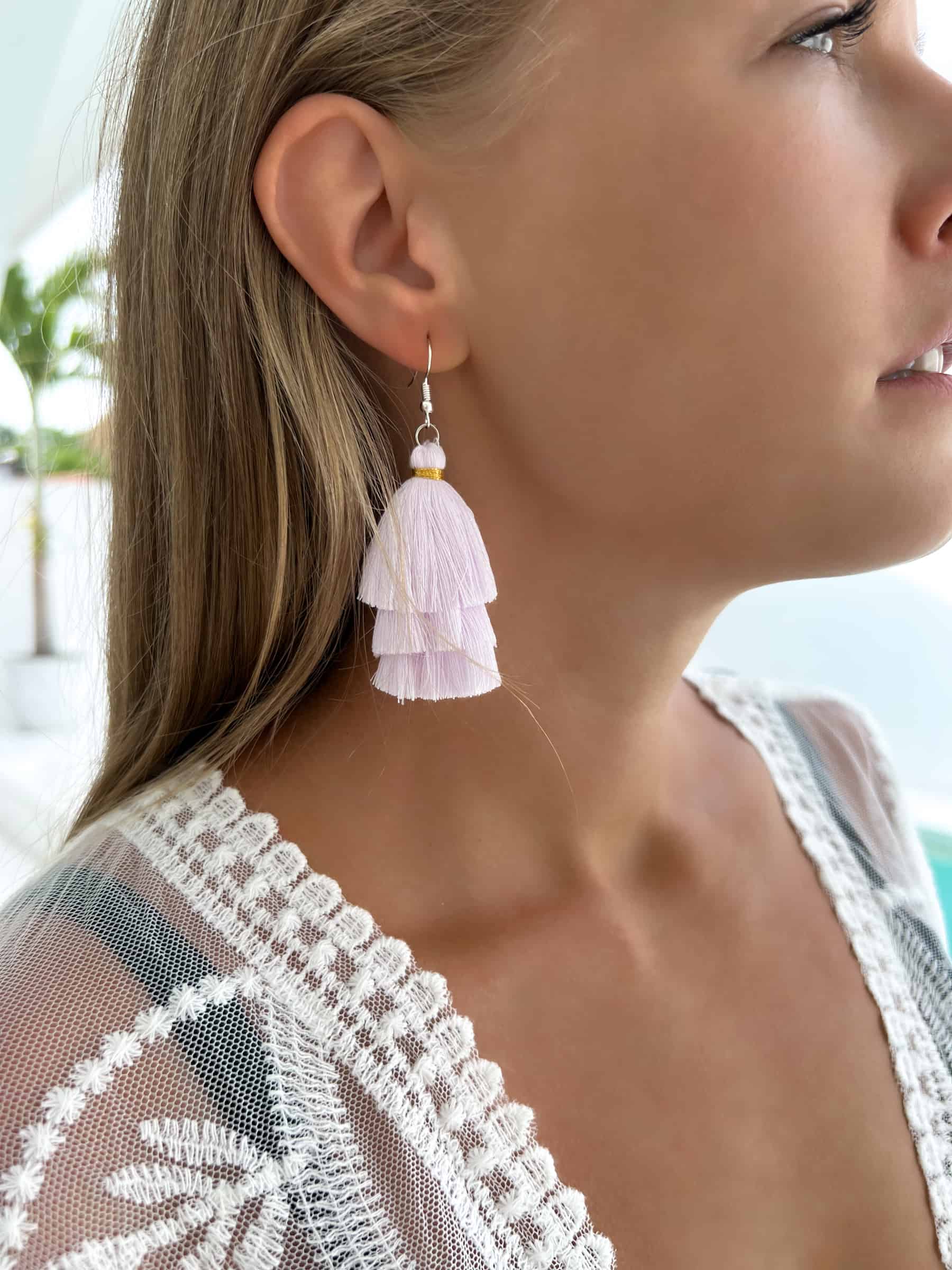 Schlagwörter: Bali, Boho, Eleganz, Lilafarbene Quasten, Modisch, Ohrringe