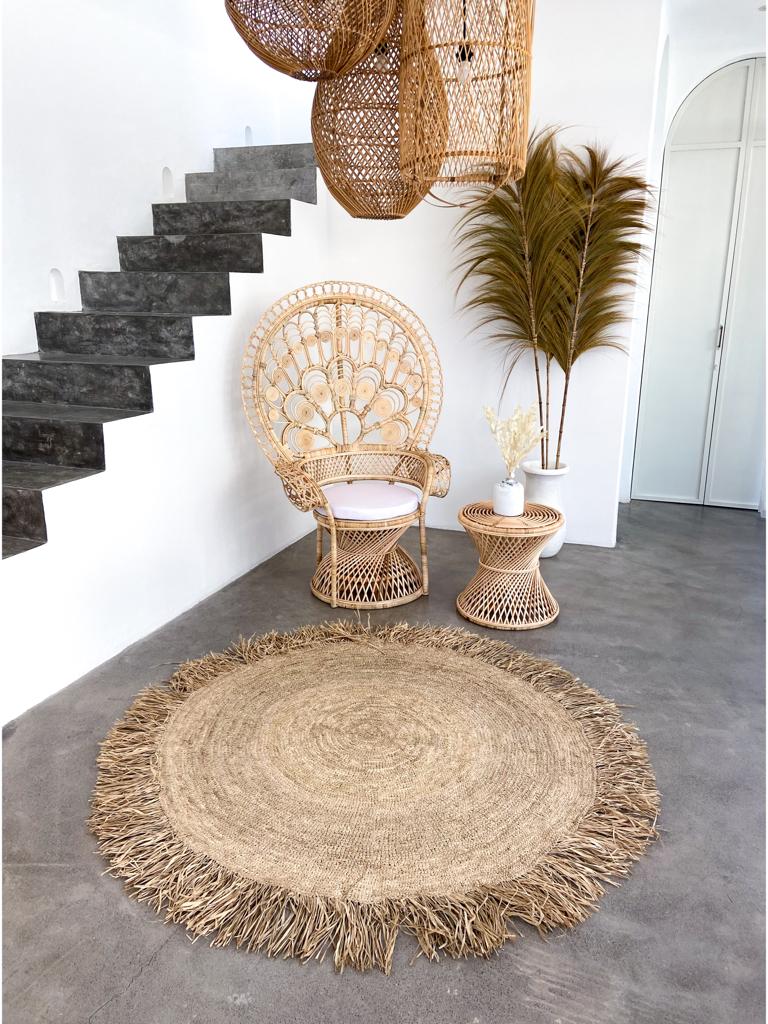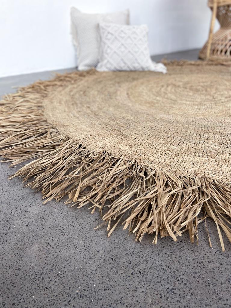Beschreibung: Runder Raffia Teppich
