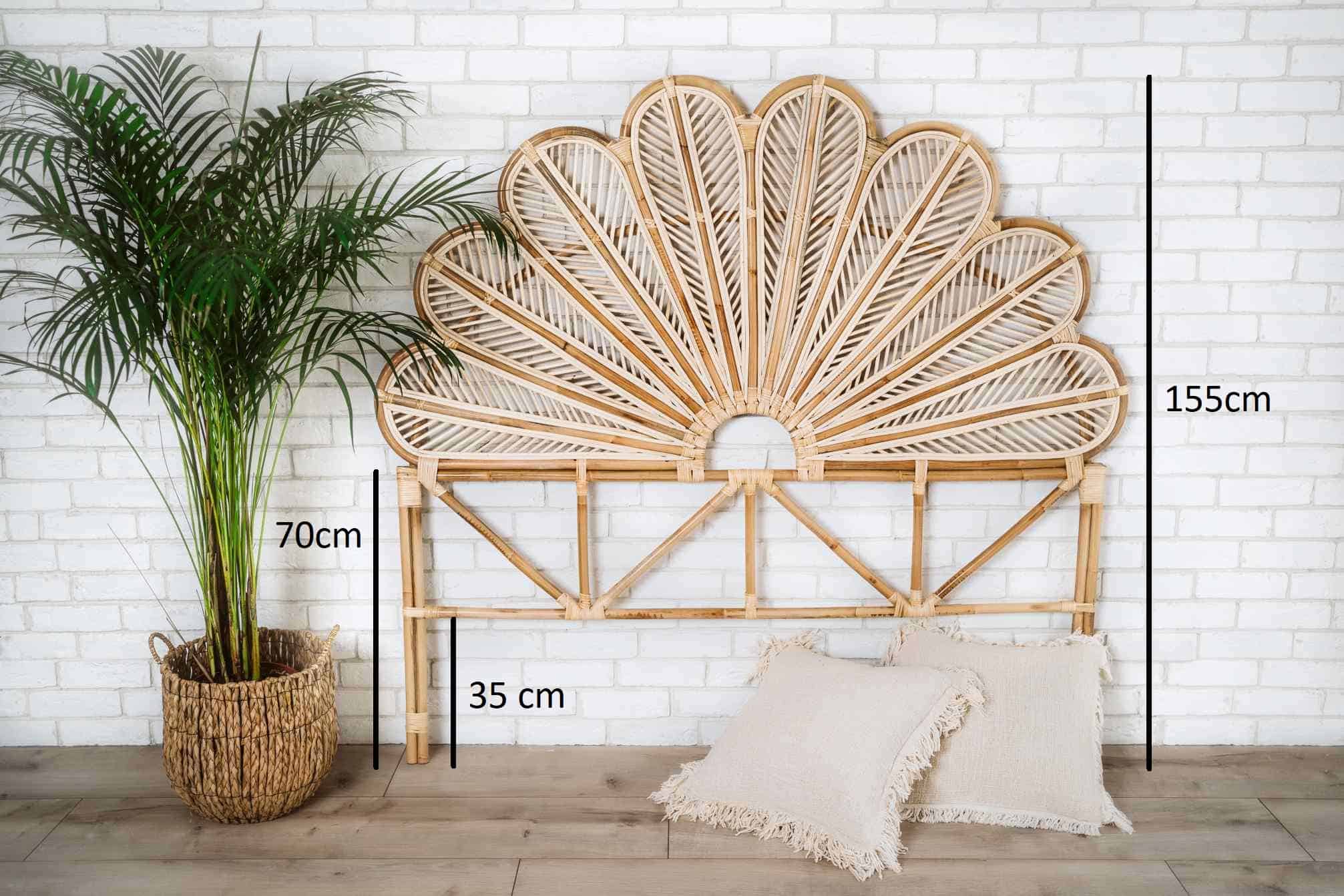Rattan-Kopfteil Boho – Verwandele Dein Schlafzimmer in eine Oase der Ruhe und Schönheit mit unserem Rattan Kopfteil Boho. Dieses handgefertigte Meisterstück bringt die Essenz natürlicher Eleganz direkt in Dein Zuhause. Mit seinem einzigartigen Design und der sorgfältigen Verarbeitung bietet das Kopfteil nicht nur eine stilvolle Kulisse für Dein Bett, sondern fördert auch ein ökologisch bewusstes Wohnen. Perfekt für jedes Boho Schlafzimmer, verleiht dieses Kopfteil Deinem Raum eine warme, einladende Atmosphäre und unterstreicht Deinen individuellen Stil.