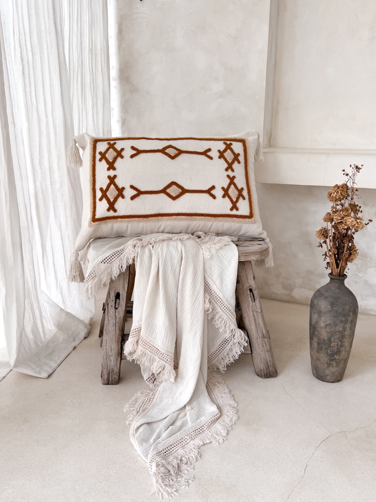 Rechteckige Boho-Kissenbezug LIU (60cm x 40cm + Fransen) – Der LIU Rechteckige Kissenbezug kombiniert Boho Design und handgefertigte Wohnkultur, um Deinem Heim eine besondere Note zu verleihen. Aus ökologischen Materialien gefertigt und durch balinesisches Kunsthandwerk zum Leben erweckt, ist dieser Kissenbezug ein Symbol für Nachhaltigkeit und Stil. Ideal für jeden, der einzigartige, nachhaltige Dekoration schätzt und sein Zuhause mit authentischer Handwerkskunst verschönern möchte.