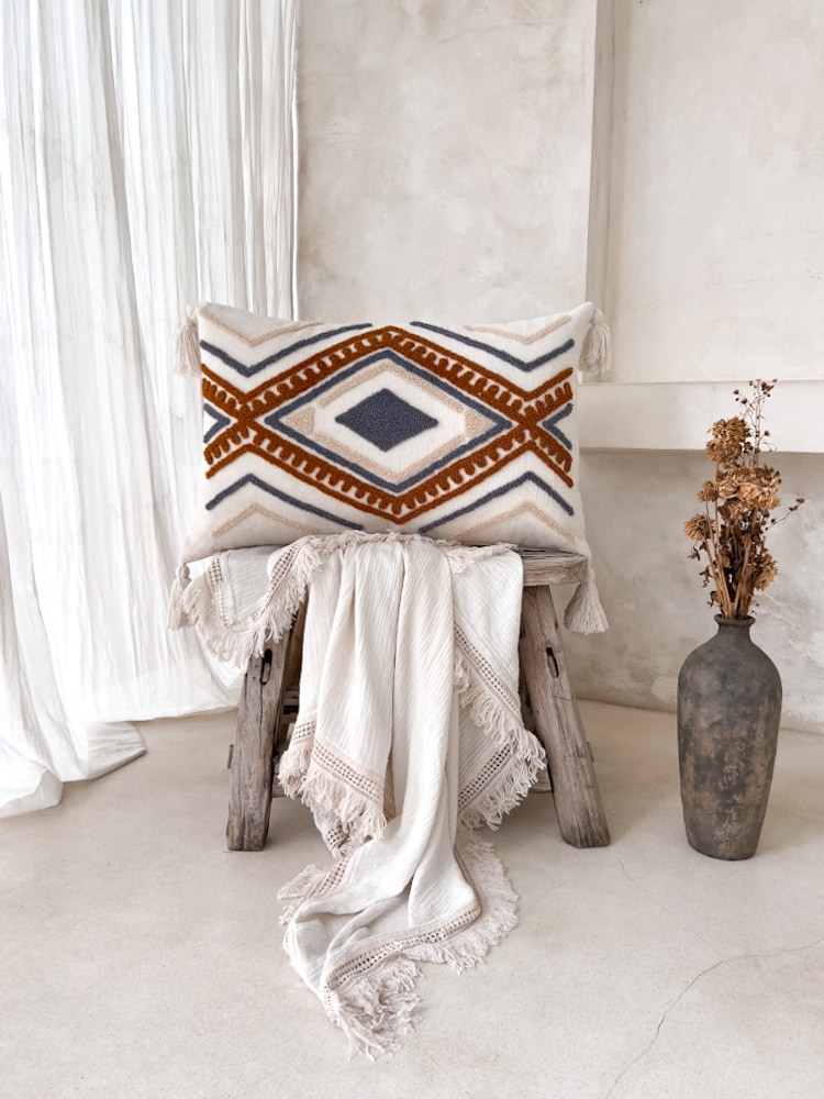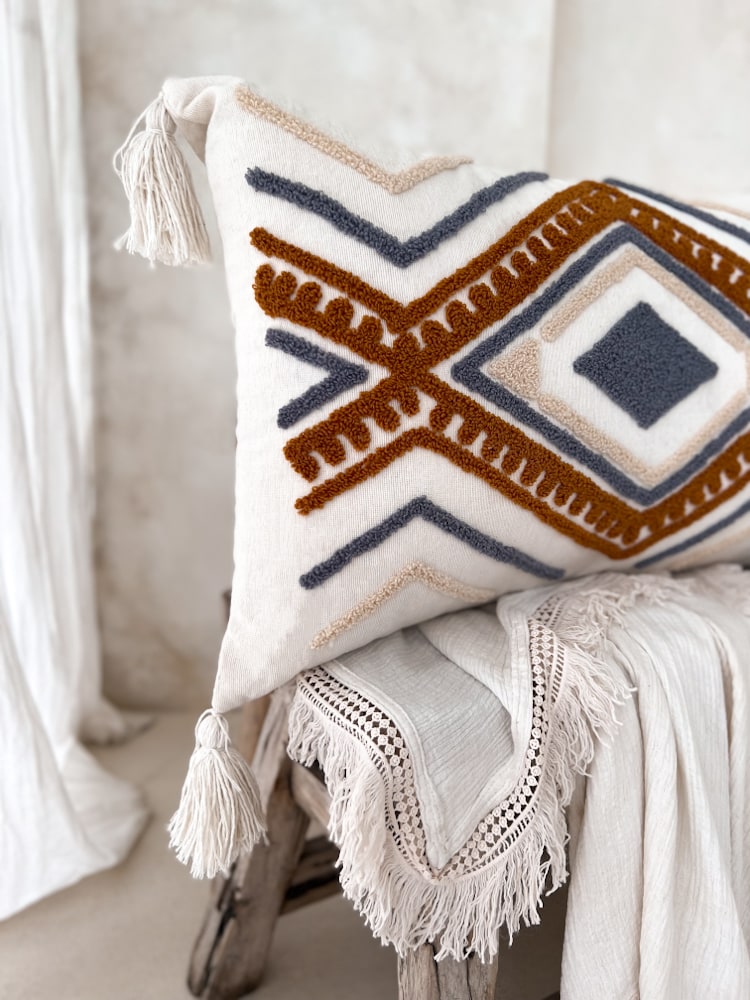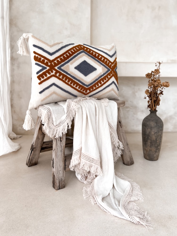 Beschreibung: Rechteckige Boho-Kissenbezug MELISA