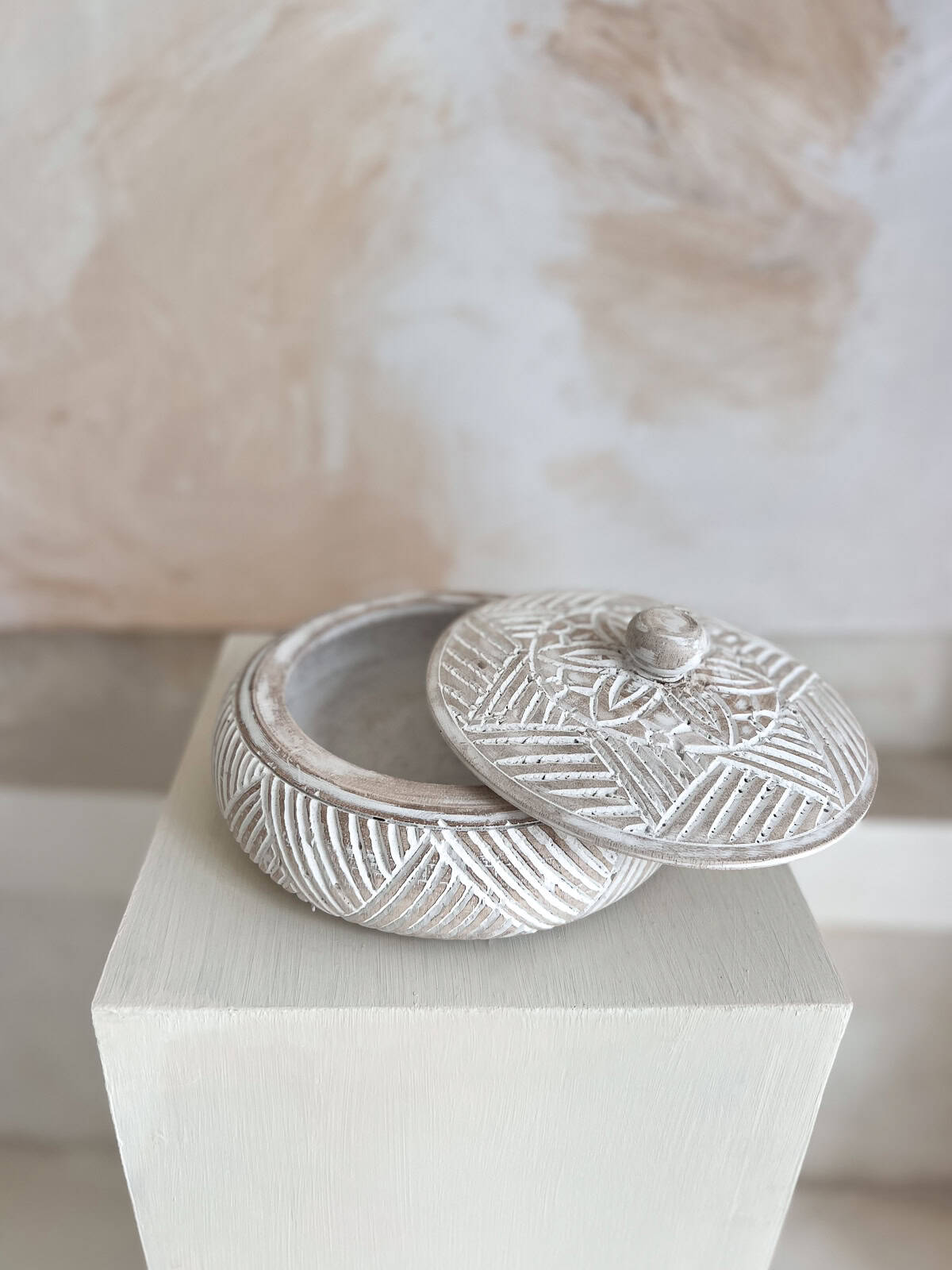 Jede Schale ist einzigartig – natürliche Maserung und feine Unterschiede im Handwerk verleihen ihr Charakter. Eine Holzschale im Boho-Stil, die Wärme, Natürlichkeit und Handwerkskunst ausstrahlt.