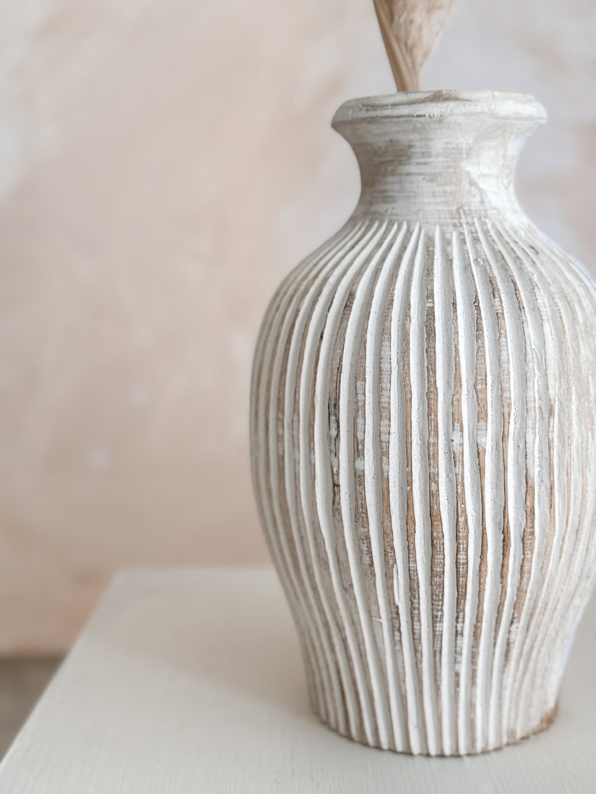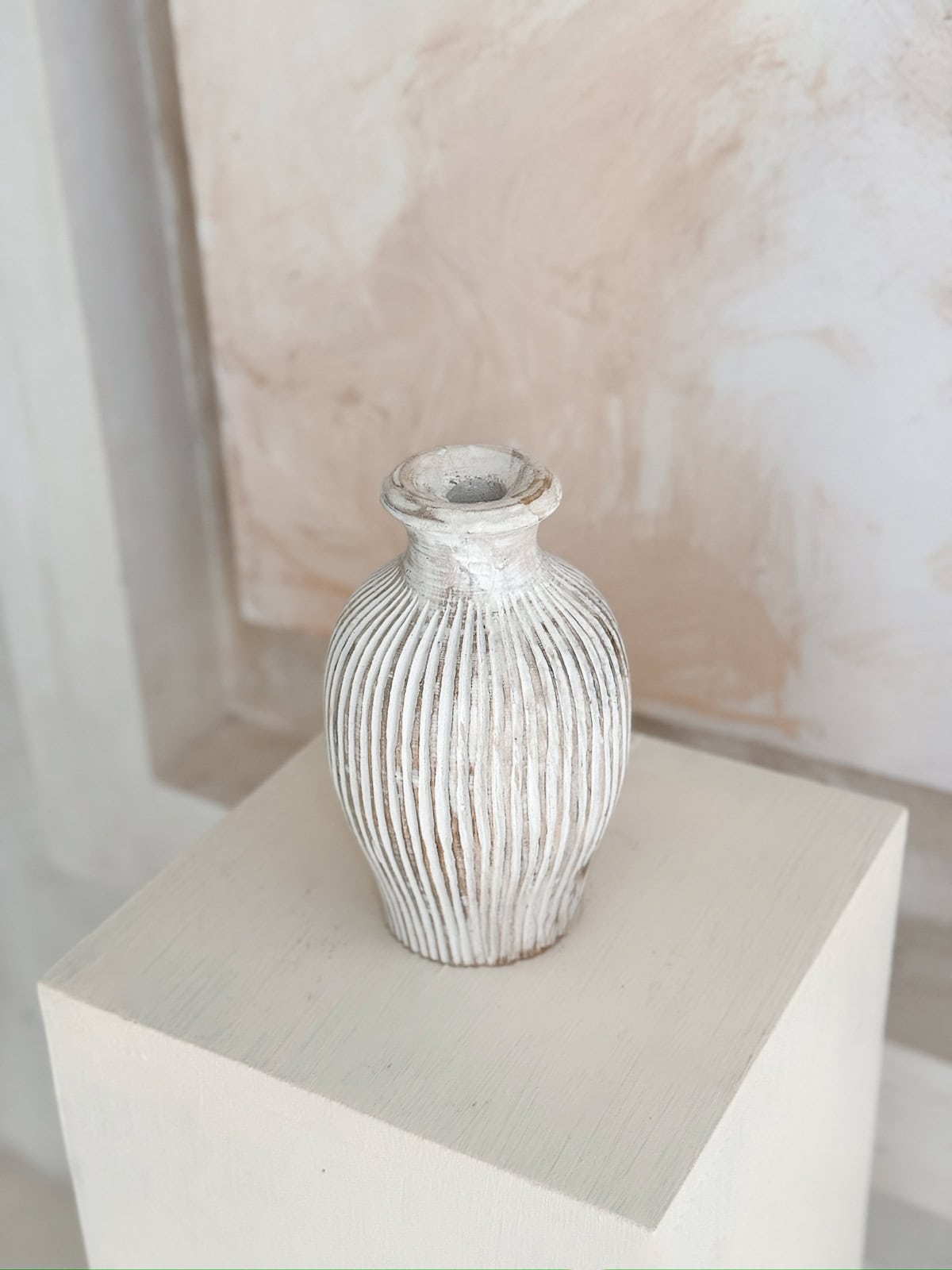 Die geschnitzten Details machen jedes Stück zum Unikat. Eine Boho-Vase, die sich in natürliche, ethnische und minimalistische Interieurs einfügt – und als funktionale Holzskulptur überzeugt.