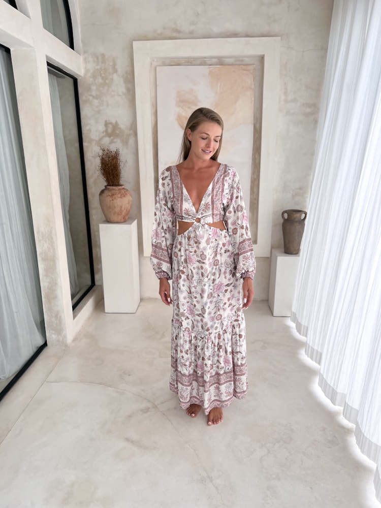Beschreibung: Sommerkleid Lang BOHO SWING Beige