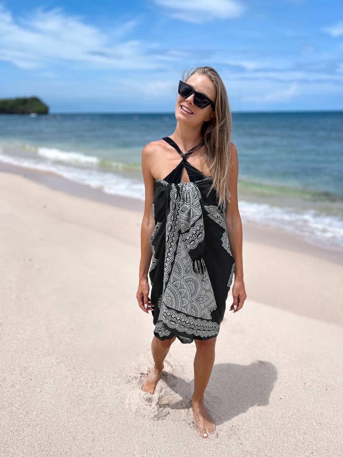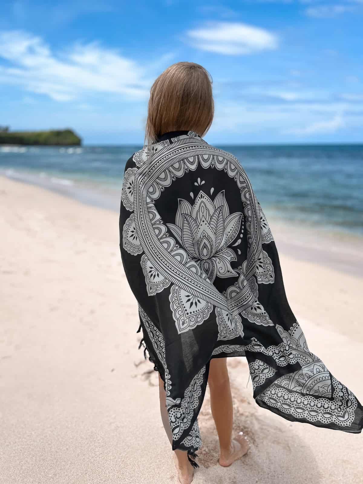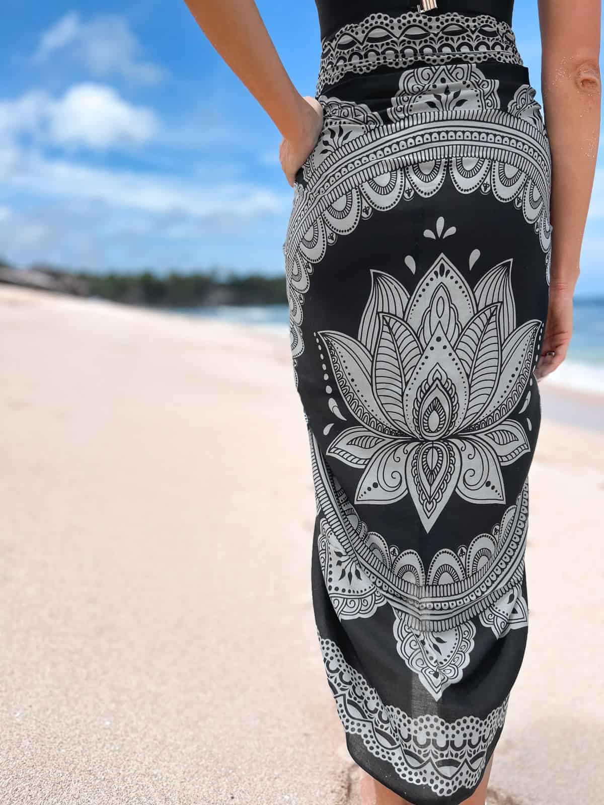 Strand Pareo Sarong LOTUS Schwarz ist ein handgefertigtes Produkt von der Insel Bali. Dieses elegante Strandpareo im Boho-Stil passt perfekt zu sommerlichen Outfits und verleiht deinem Strandlook das gewisse Etwas. Es ist aus weichem Material gefertigt und eignet sich ideal als vielseitiges Strandaccessoire. Unsere Produkte stammen direkt von lokalen Kunsthandwerkern, die wir persönlich kennen, was die Herkunft und Qualität unserer Artikel garantiert.