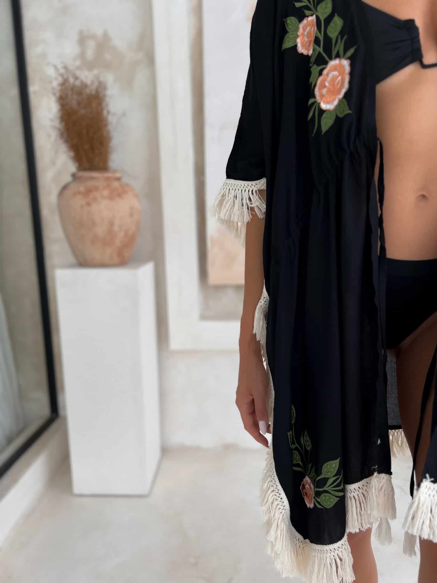 Strandüberwurf MIA KURZ Schwarz ist ein handgefertigtes Produkt aus Bali. Dieser elegante kurze schwarze Strandüberwurf im Boho-Stil ist ideal für sommerliche Outfits und als leichtes Strandaccessoire. Hergestellt von lokalen Kunsthandwerkern, bietet dieser Überwurf sowohl Stil als auch Komfort. Unsere Produkte stammen direkt von vertrauenswürdigen Lieferanten, die wir persönlich kennen.