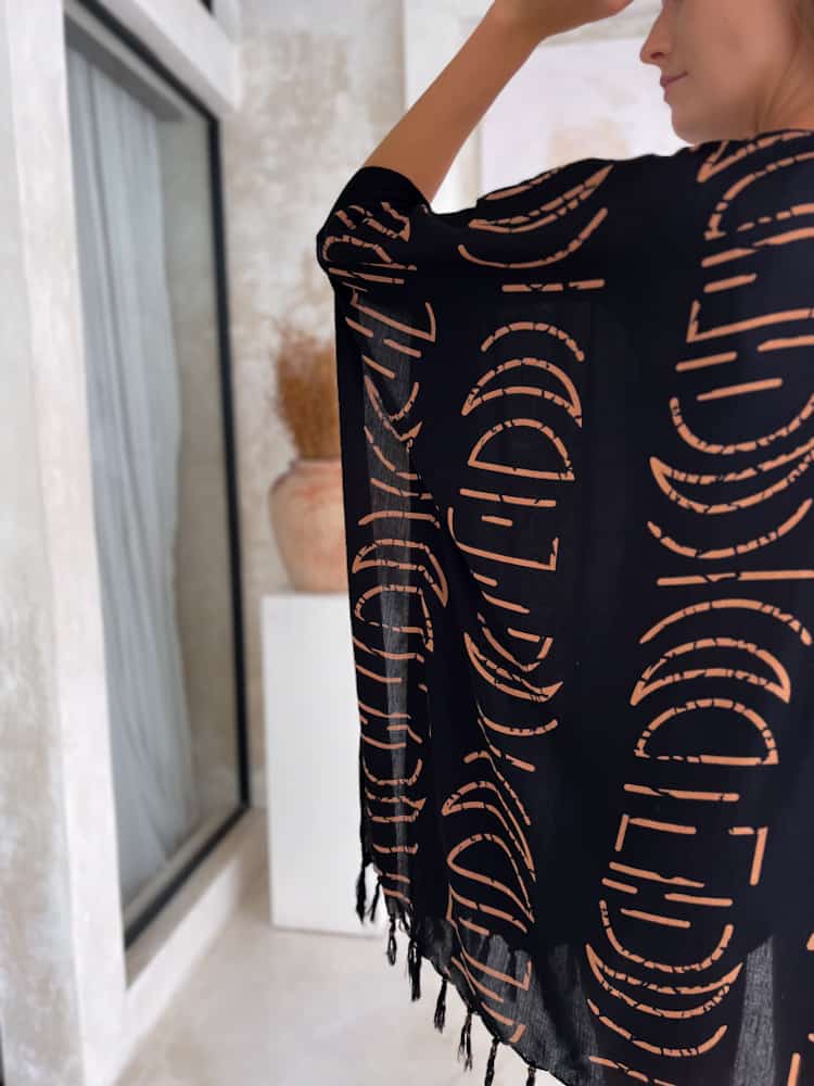 Strandüberwurf MOON Schwarz ist ein handgefertigtes Produkt aus Bali. Dieser elegante schwarze Strandüberwurf im Boho-Stil ist ideal für sommerliche Outfits und als leichtes Strandaccessoire. Hergestellt von lokalen Kunsthandwerkern, bietet dieser Überwurf sowohl Stil als auch Komfort. Unsere Produkte stammen direkt von vertrauenswürdigen Lieferanten, die wir persönlich kennen.