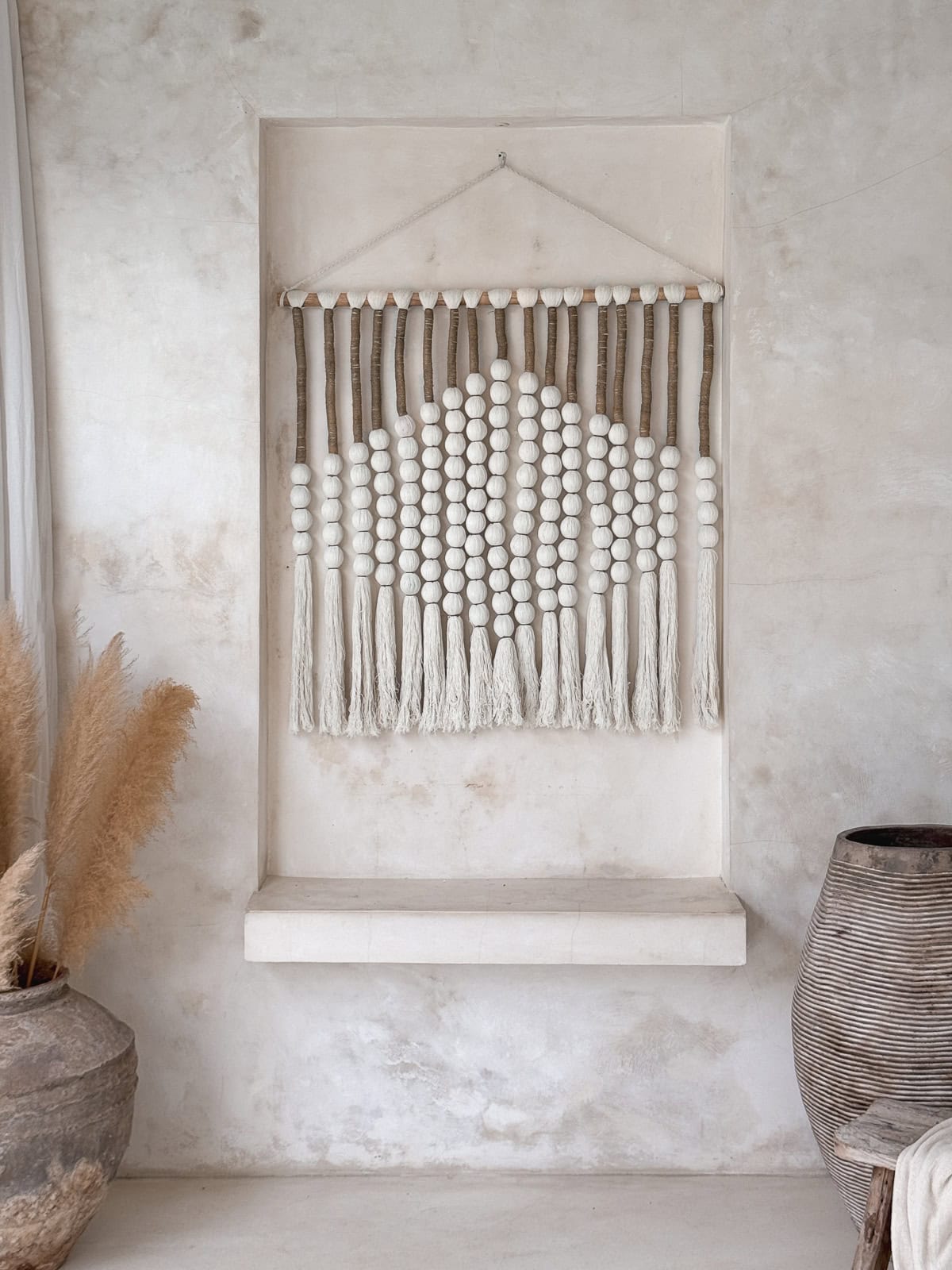 Wanddekoration „DUNE“ – Handgefertigt aus Baumwollkordeln und Naturperlen