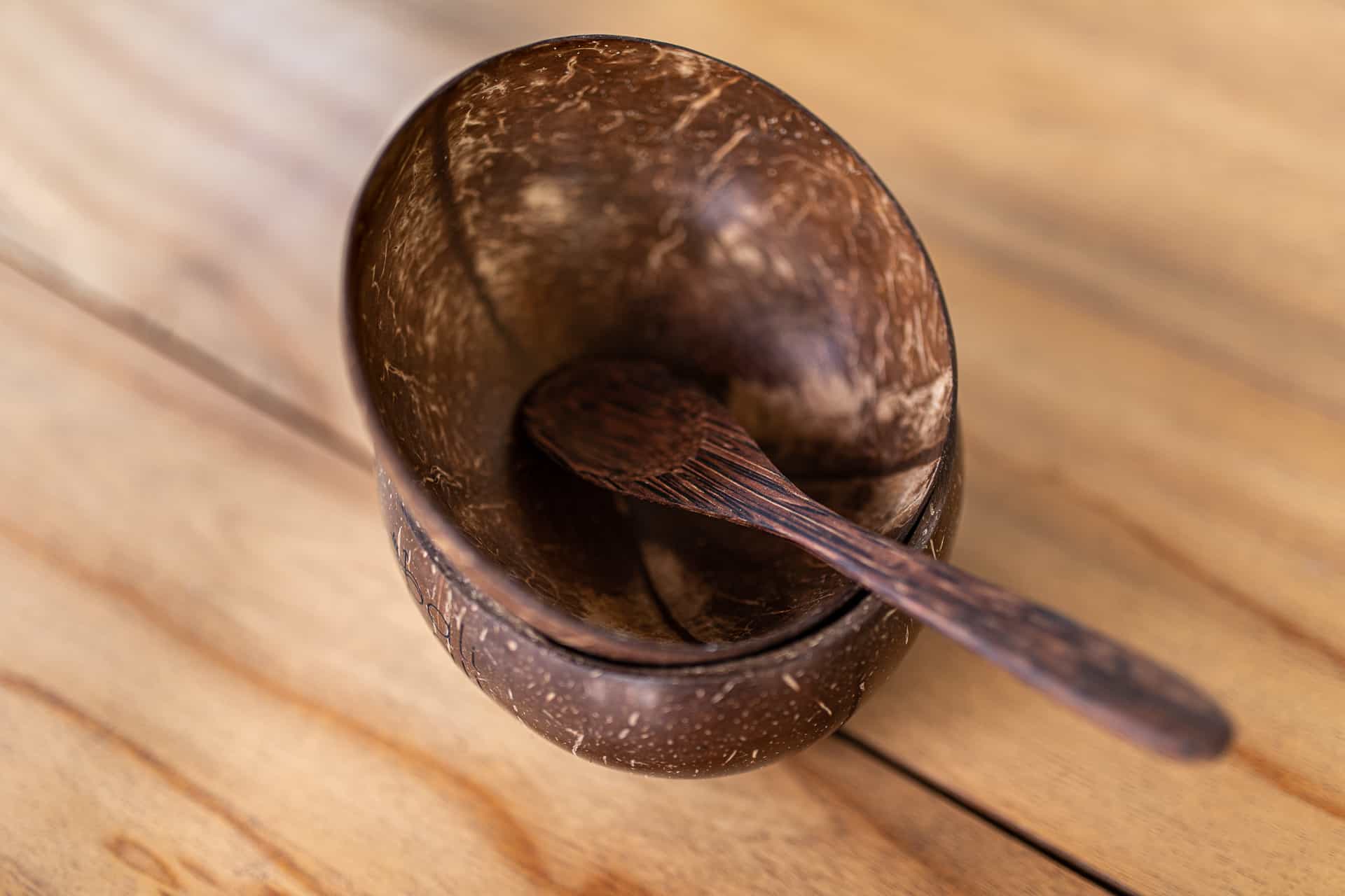Ekologiczny zestaw, w którego skład wchodzi: miseczka oraz sztućce kokosowe. 100% naturalny, wykonany ręcznie zestaw, którego napewno umili śniadanie. Miseczka to wyszlifowana łupina orzecha kokosowego prosto z Bali. Sztućce pochodzą z drewna kokosowego. Jest to produkt w żaden sposób nie przetworzony, w pełni ekologiczny.